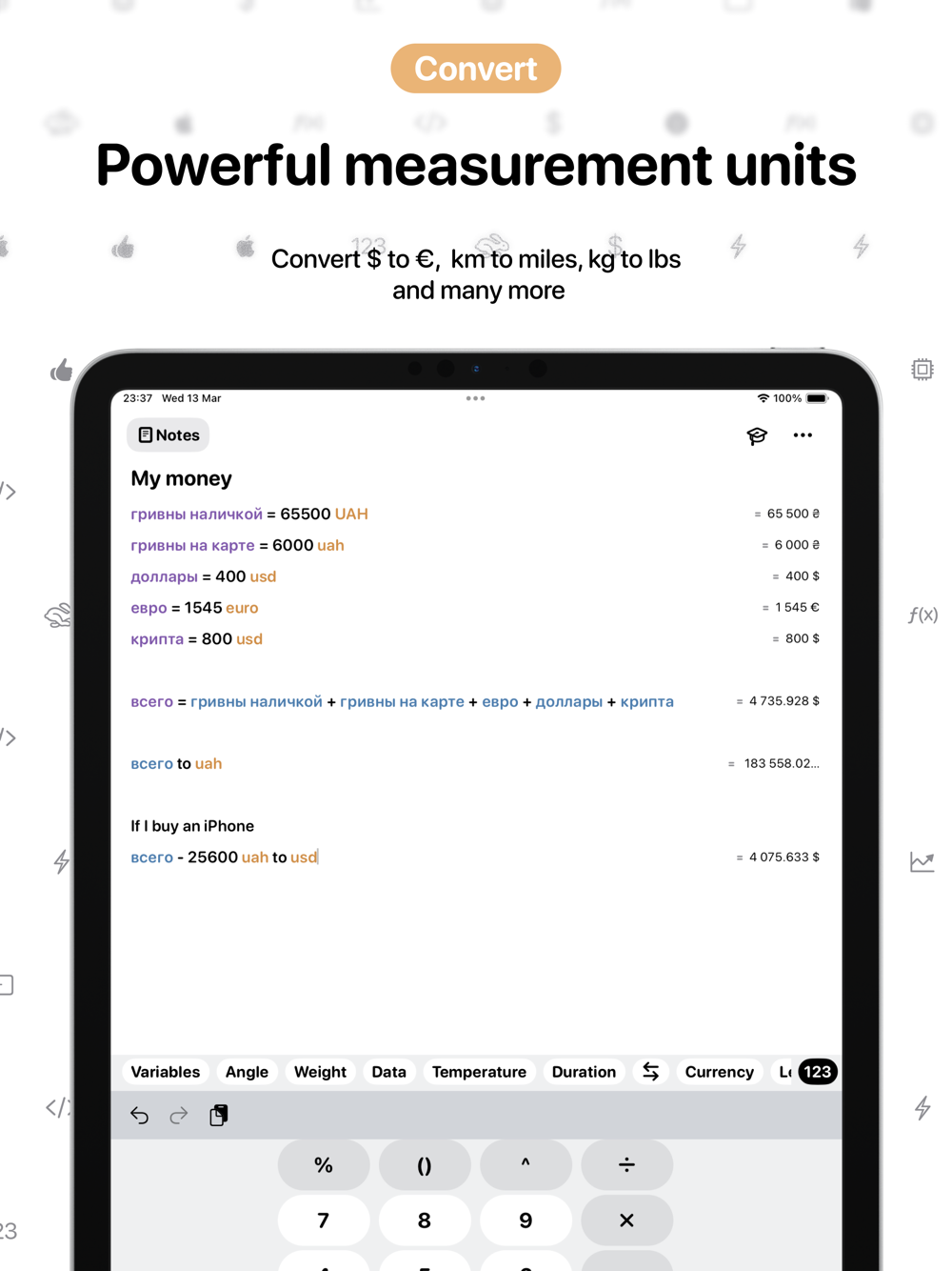 - iCloud Synchronization: Never lose your work again. With iCloud synchronization, your calculations are securely stored and accessible across all your devices. Continue your work from anywhere, at any time.