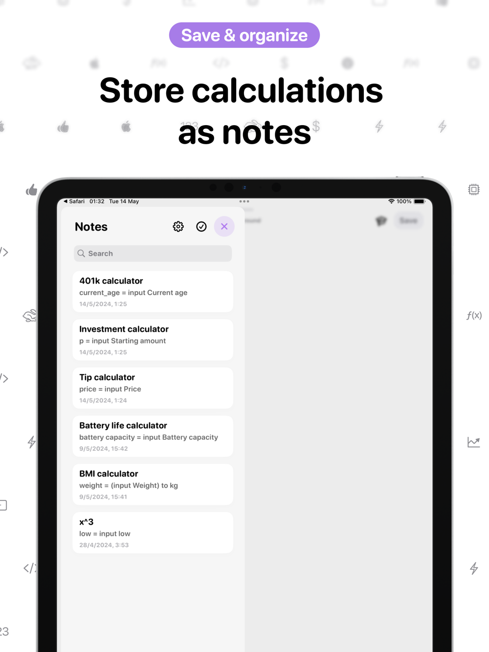 - Organize with Note-Like Objects: Keep your calculations neat and organized. With Calculo, you can arrange your calculations into note-like objects, making it easy to track and revisit your work.