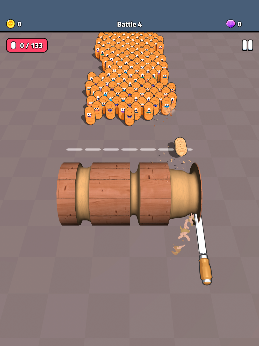 Maneuver a small cutter to shave off wood, creating bullets from the shavings. The more you slice, the more ammo you get to shoot at the wooden enemies.