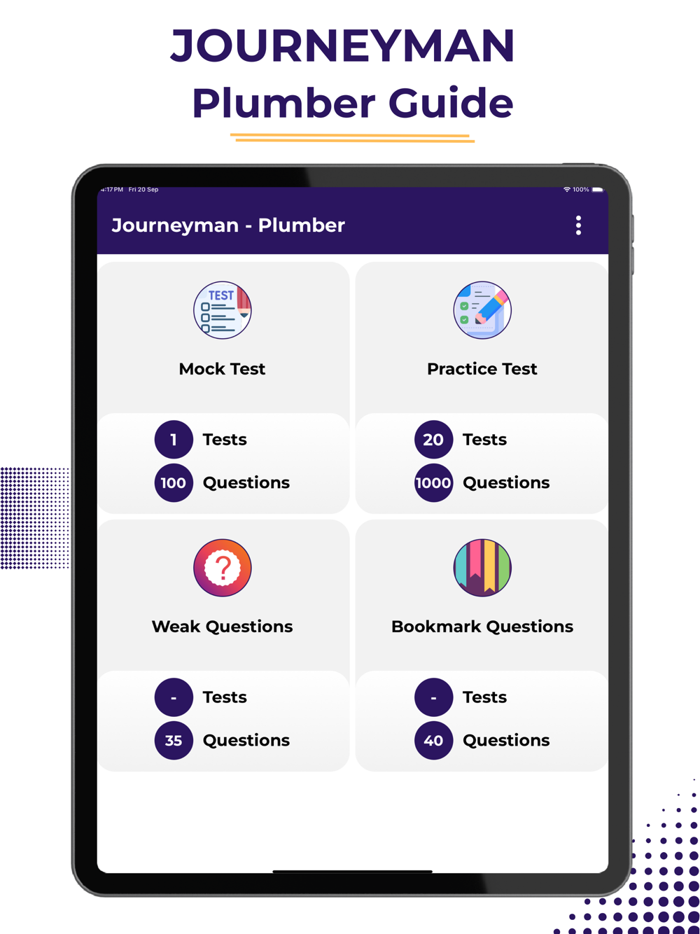 Whether you're aiming to pass your journeyman plumber exam or simply seeking to enhance your knowledge, the Journeyman Plumber Guide app is your go-to resource. With its user-friendly interface and comprehensive content, it offers a convenient and effective way to prepare for the exam, ensuring you're fully equipped for success on the exam.