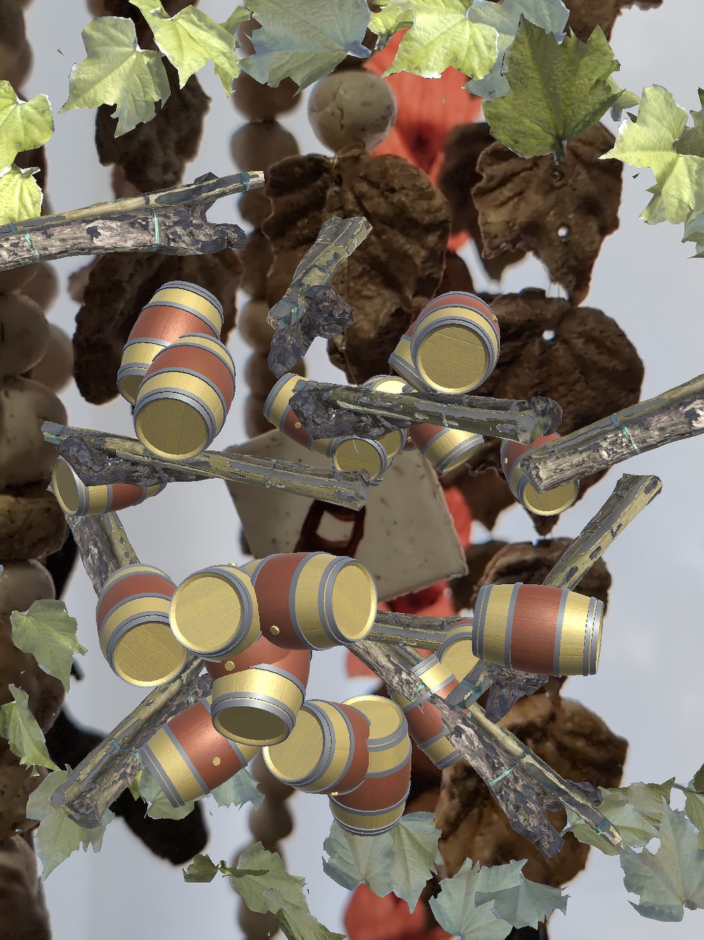 Watch as leaves, vines, smart corks, and barrels dance in the round to highlight the importance of sustainability and the circular economy in the wine industry. Each element in this augmented reality artwork has been photogrammetry scanned from an actual physical object at the Marco Felluga winery in Italy.