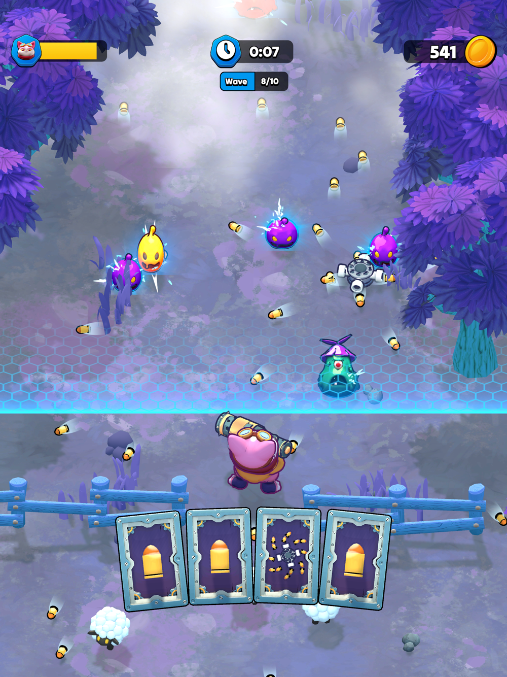 Take on the role of a brave cat defender armed with a formidable gun, standing as the last line of defense against waves of hungry slimes threatening the animal farm. Strategically deploy a hand of skill cards, each representing unique abilities, to fend off the relentless onslaught and keep the farm animals safe.