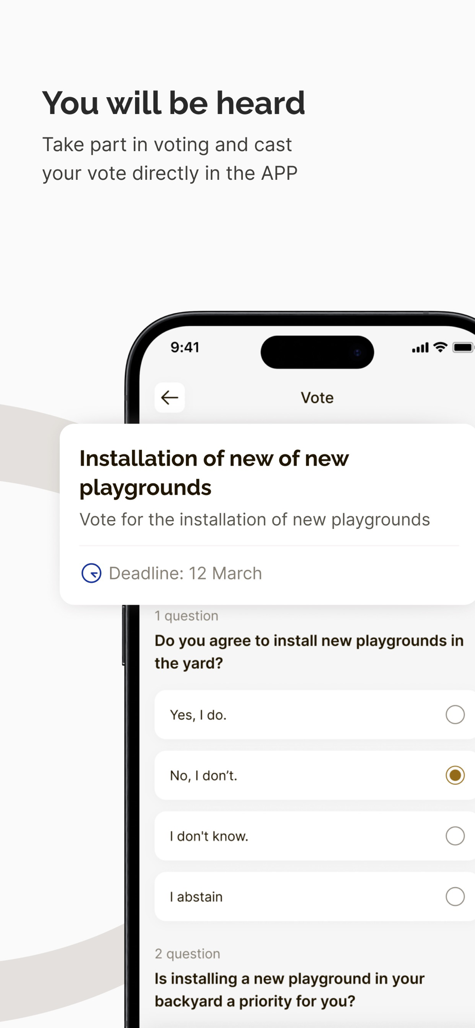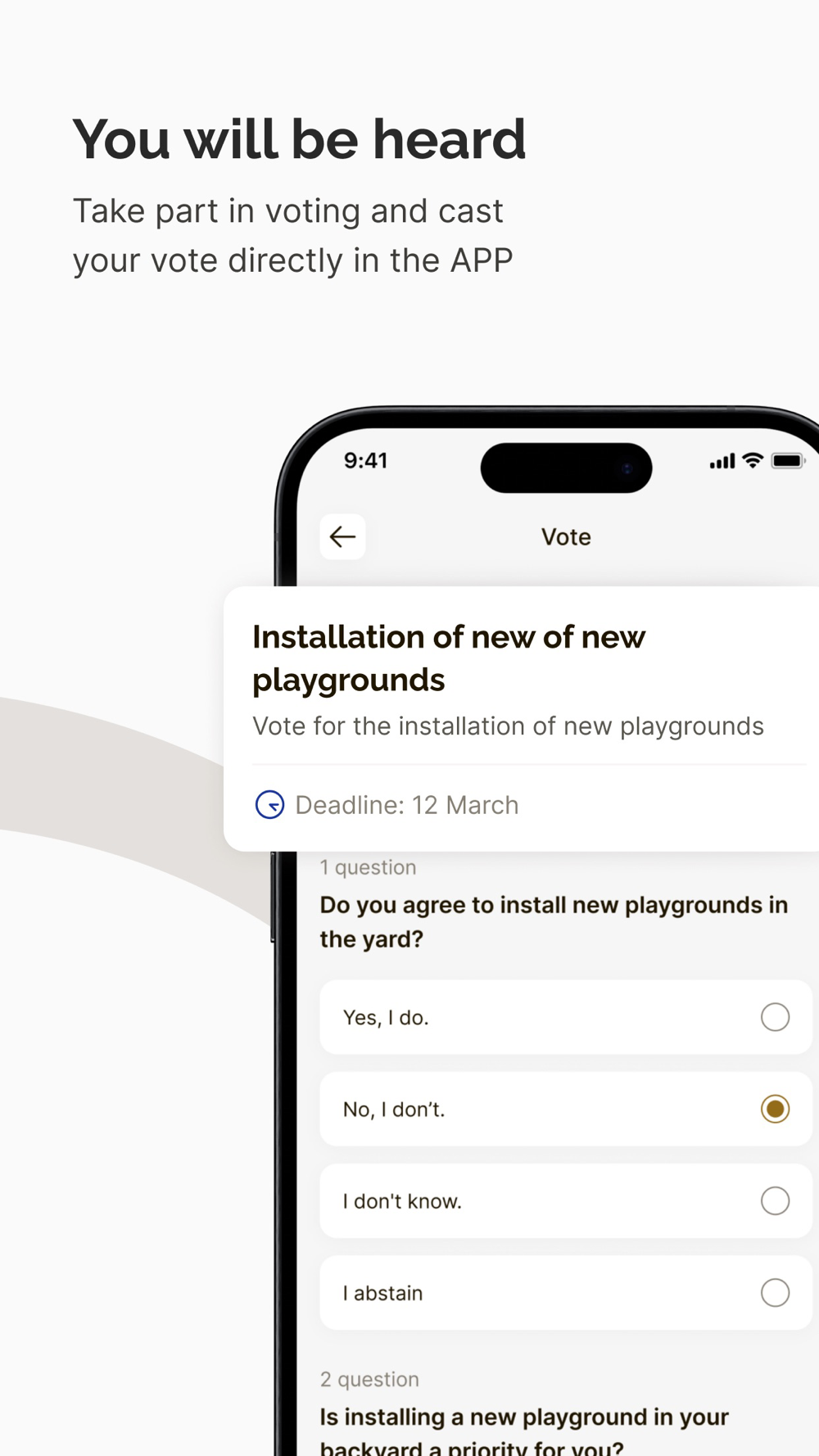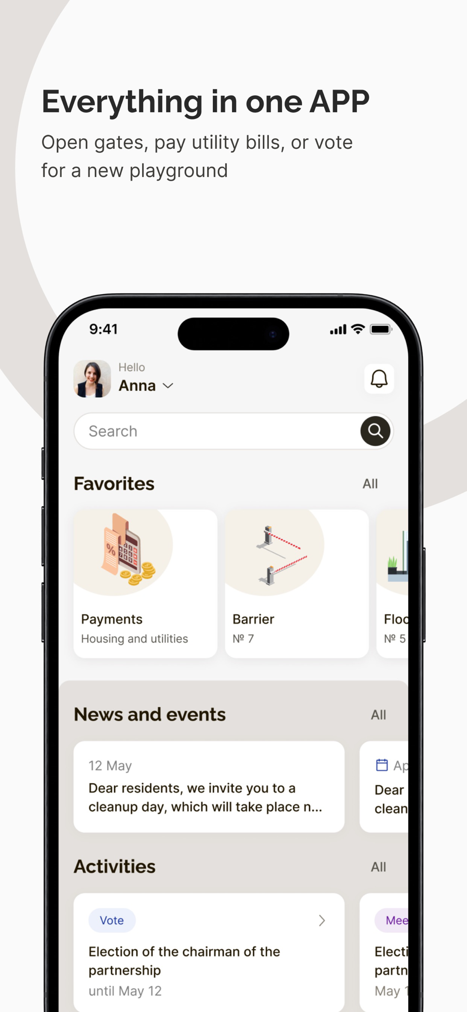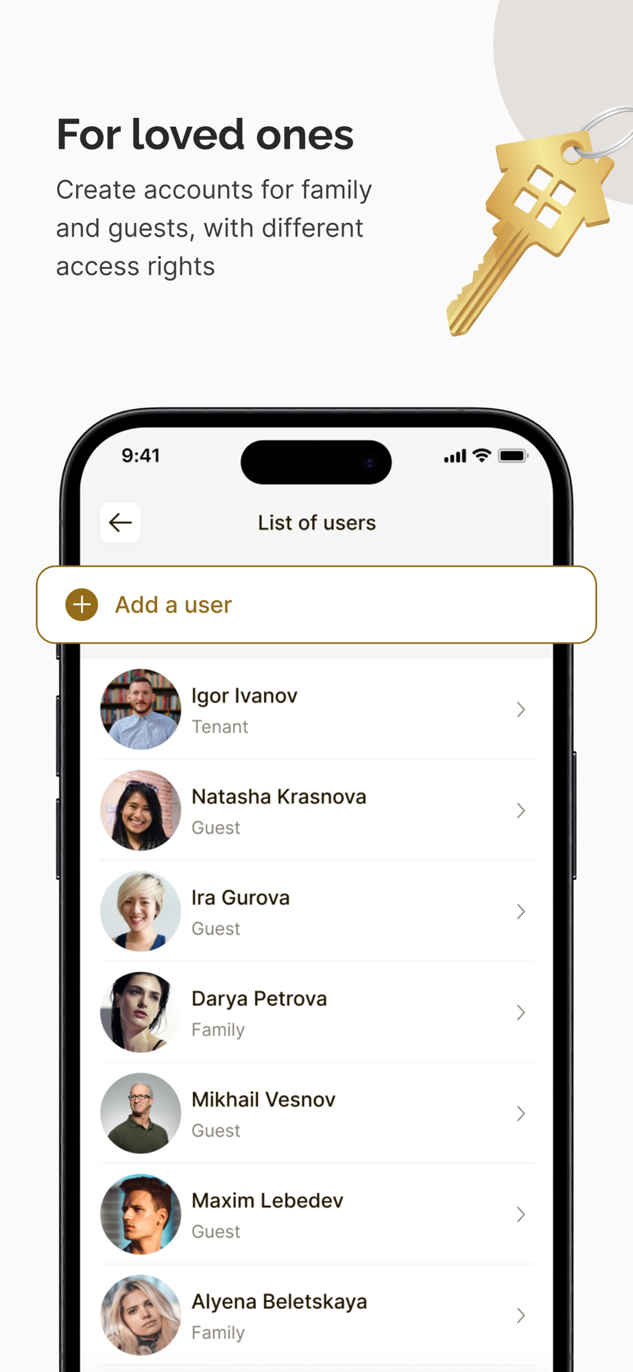 Download the application, add family, guests and tenants, enjoy the wide functionality and beautiful design.