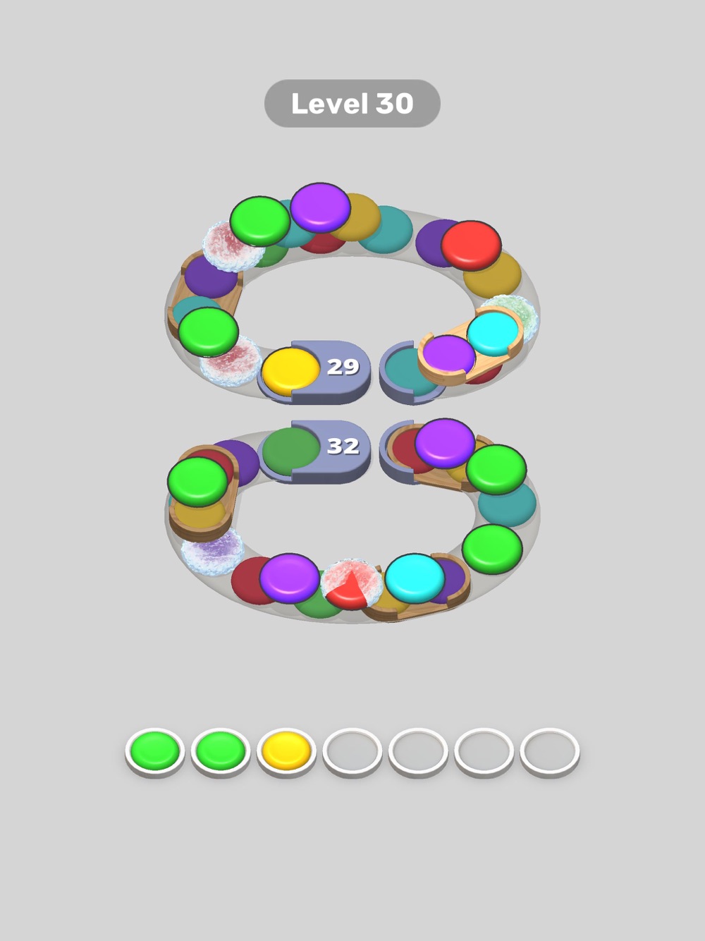 Tap to select disk and place it in the dock. Collect 3 same colored disks to match them. Clear the board. Solve exiting puzzle and overcome obstacles. Tons of levels and hours of FUN!