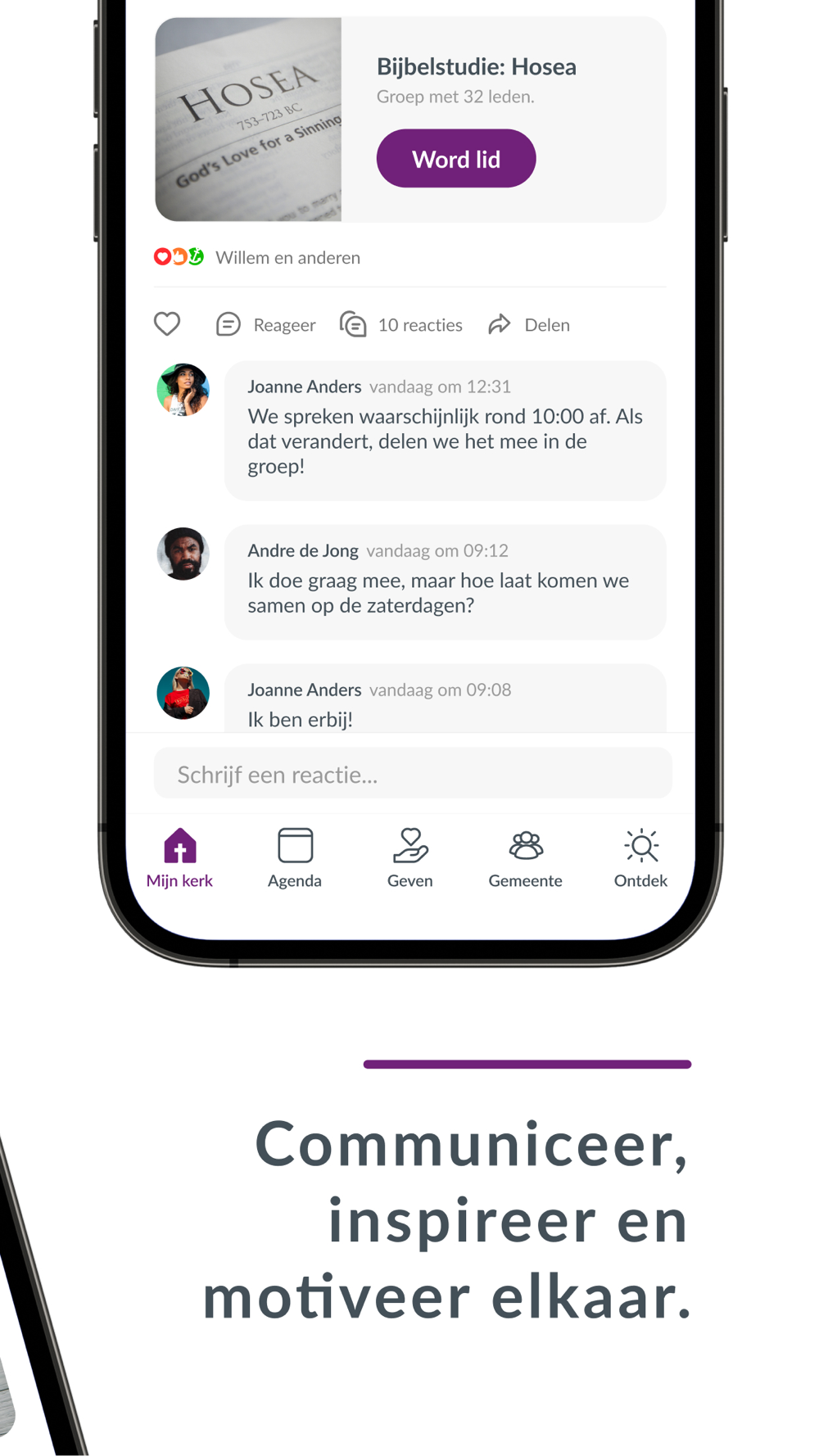 Als gemeente willen wij betrokken zijn met elkaar, efficiënt de organisatie van de kerk onderhouden, elkaar ondersteunen en nog veel meer. Onze eigen mobiele app helpt ons hierbij!