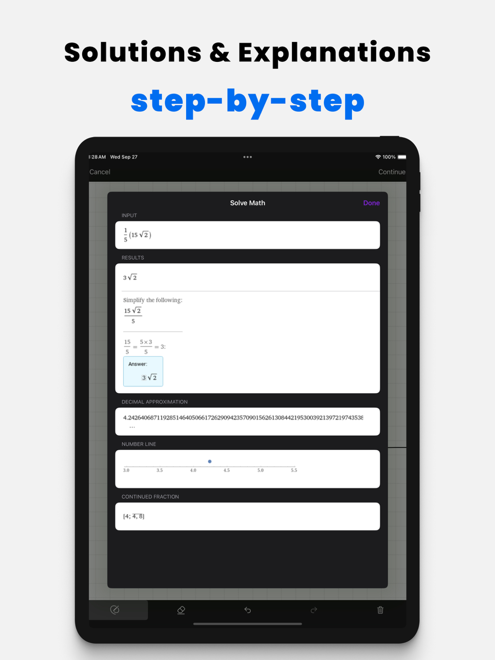 • Desenhe equações matemáticas e receba soluções passo a passo e explicações do tutor de matemática AI.