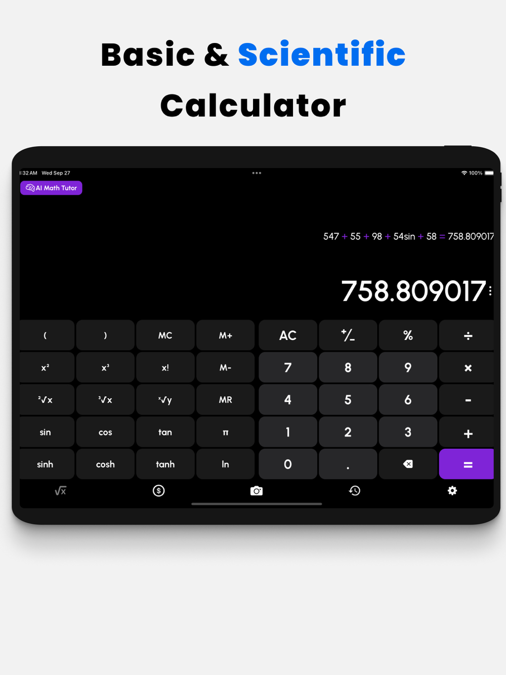 Calculadora e Solucionador de Matemática AI, a única aplicação que precisará para todos os seus cálculos e problemas matemáticos! Combinamos elegância, simplicidade e o poder da IA para proporcionar uma experiência de calculadora incomparável.