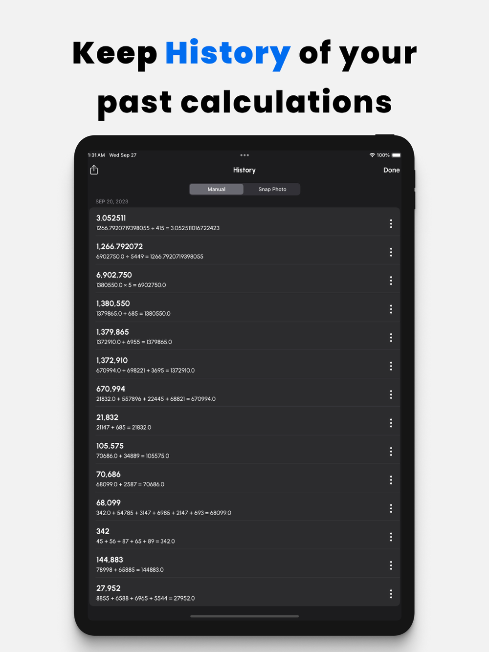 • Acompanhe todos os seus cálculos anteriores com a funcionalidade de Histórico.