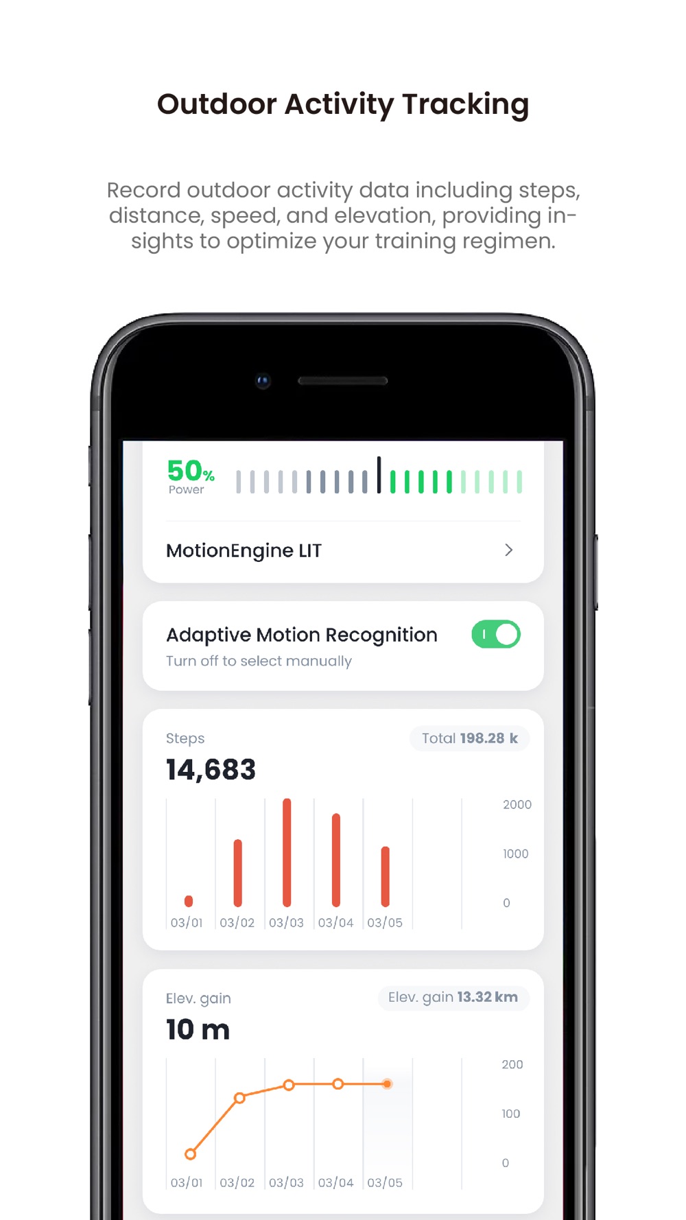 4. Outdoor Activity Tracking: Record outdoor activity data including steps, distance, speed, and elevation, providing insights to optimize your training regimen.