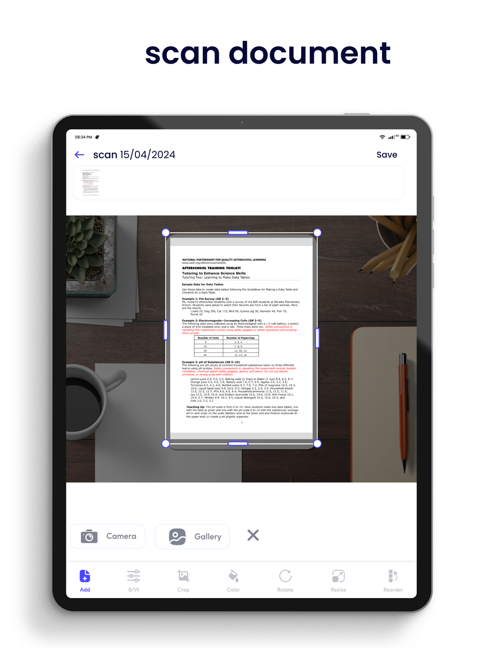 Edit like a pro: Once you've scanned your documents, our app offers a plethora of editing tools to enhance and customize them to your liking. Convert documents to black and white for optimal readability, reorder pages effortlessly, and add your signature directly within the app for a personal touch. Need to crop, rotate, or resize your document? No problem – our app makes it simple.