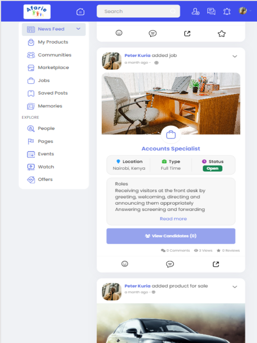 A place where people from the same community gather to benefit each other.Connect, Sell, Buy and view job listings from your community!