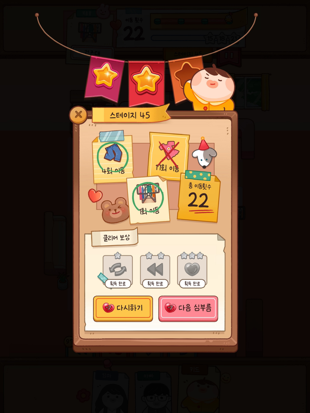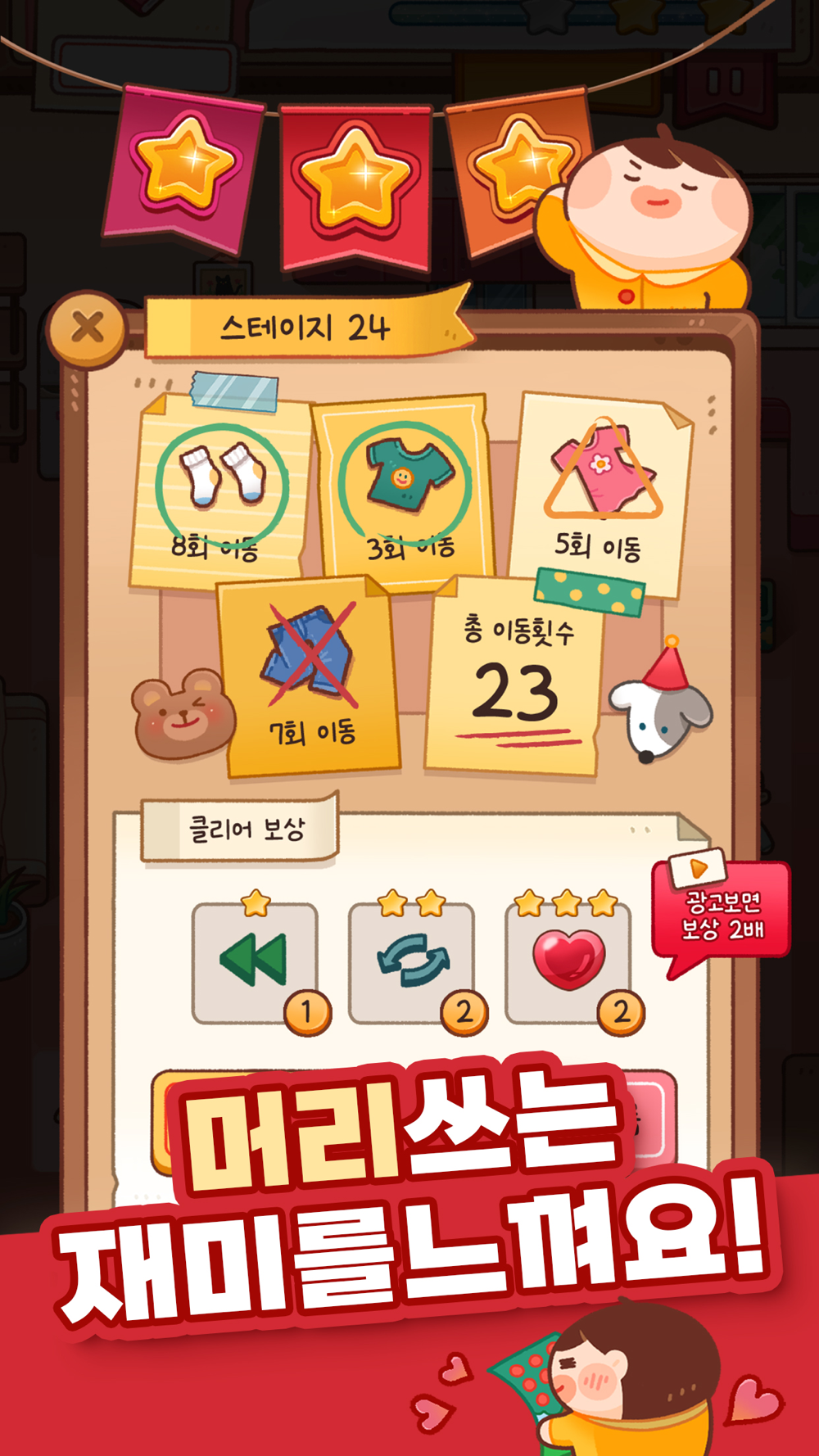 스테이지를 완벽하게 클리어하여 별을 모아요!
