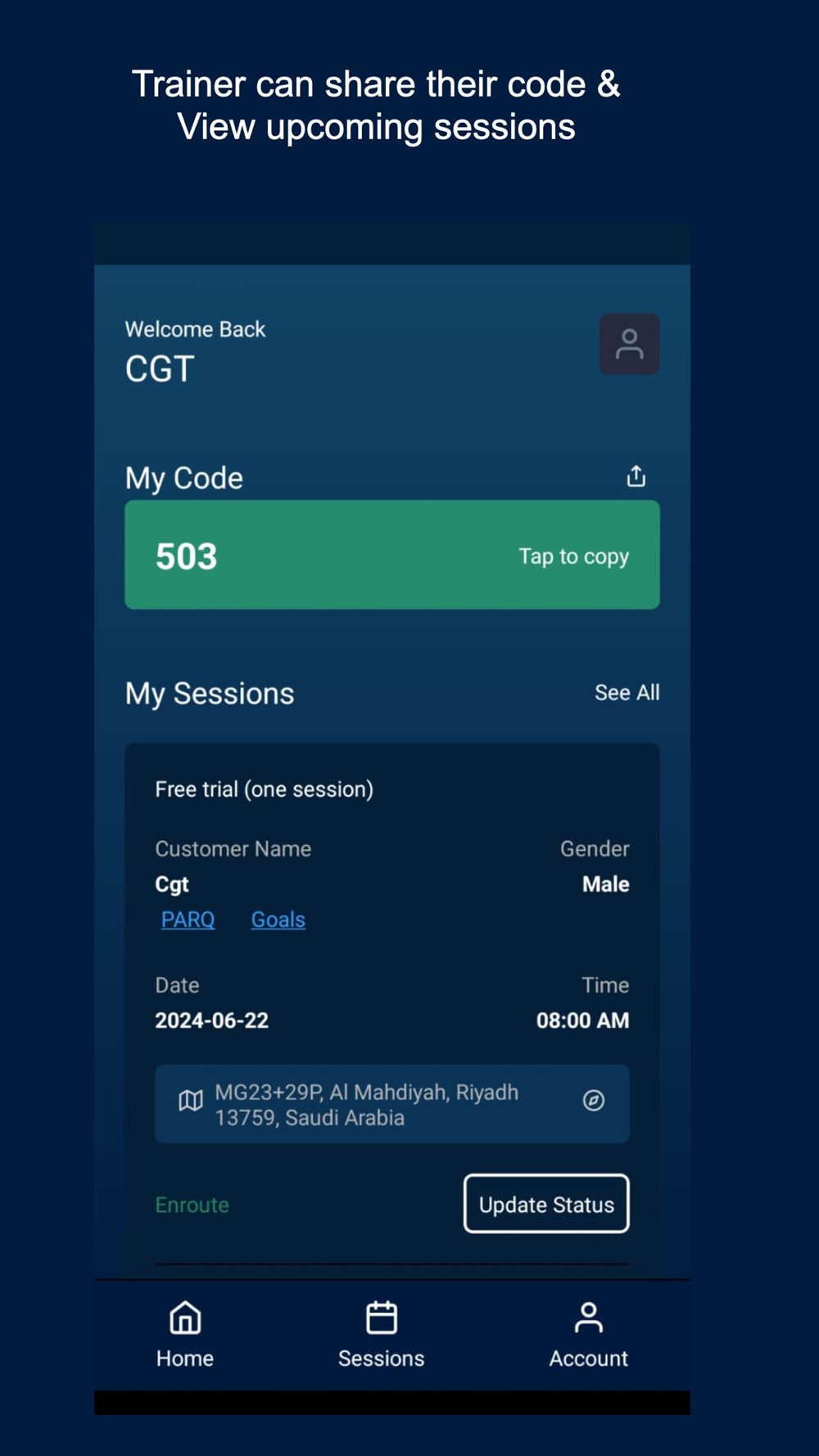 We are “Shagf” application, providing distinguished home sports services. We strive to achieve health and well-being for our customers through a professional team of distinguished trainers. Our vision is to be a daily companion for our customers in their journey of personal growth and healthy living. We offer a loyalty program that aims to reward loyal customers and encourage them to continue using our services.