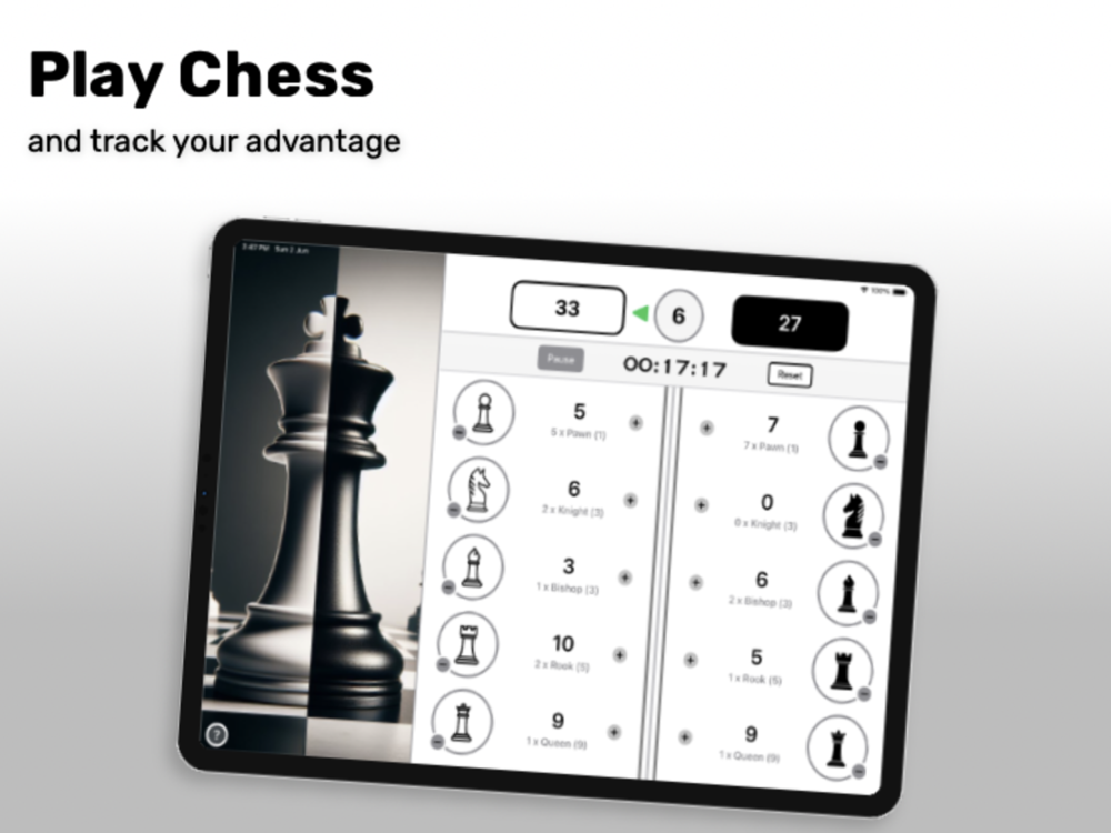 Chess Score Tracker is the ultimate tool for chess enthusiasts and players of all levels. Easily track the points of you and your opponent as pieces are captured and the score changes. Stay focused on your strategy while our app keeps you updated on the current score and advantage for each side.