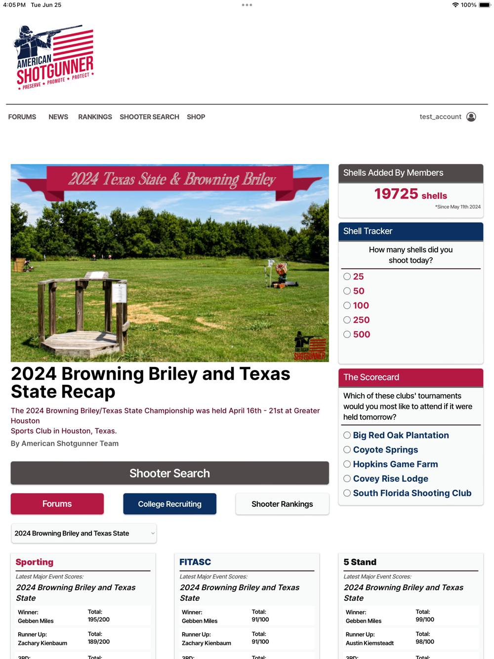 Welcome to American Shotgunner, your hub for forums, articles, personalized scoring metrics and rankings for shotgun shooting.