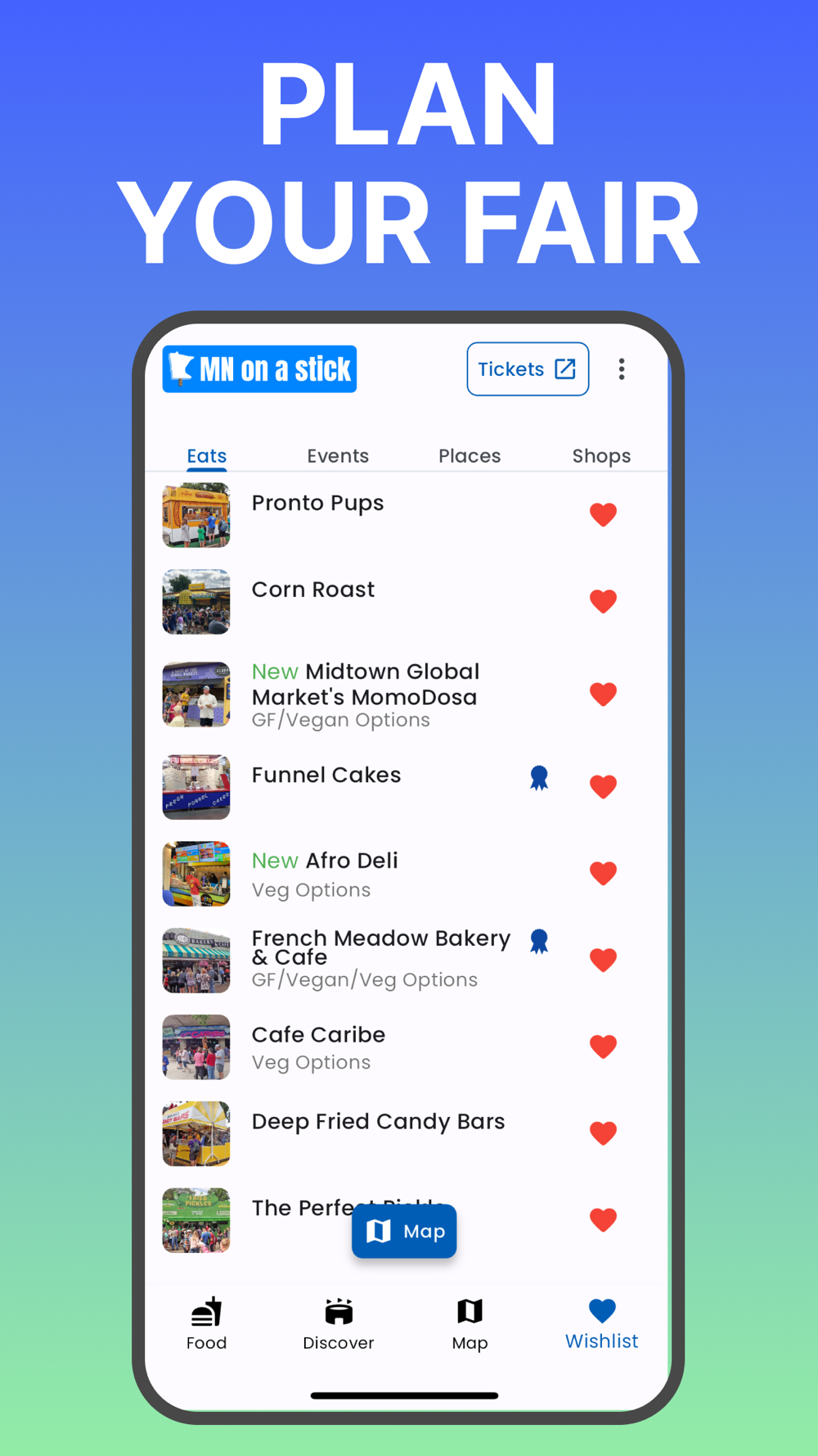 Wishlist: Plan your fair experience by adding your must-see attractions and must-try foods.