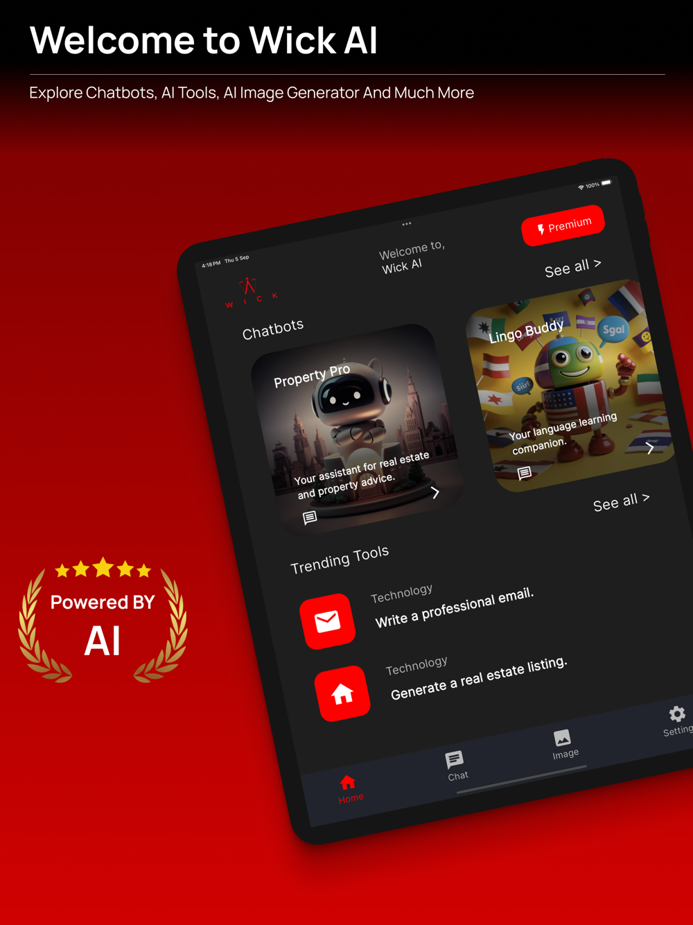 Discover Wick AI, featuring 15+ chatbots powered by ChatGPT 4o and GPT Mini 4o. Whether you need help with email writing, blog writing, real estate listings, or story writing, Wick AI is here to assist. Plus, try our AI Image Generator for creating amazing visuals.