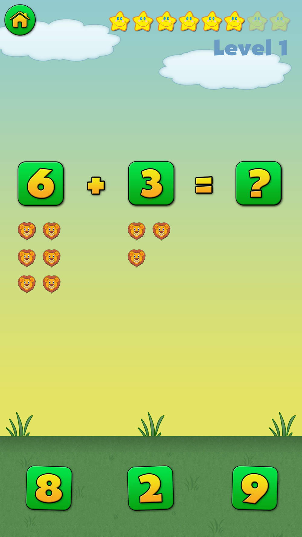 Visual Aid - numbers are represented with different animals, which makes counting, adding and subtracting easier. Can be turned off.
