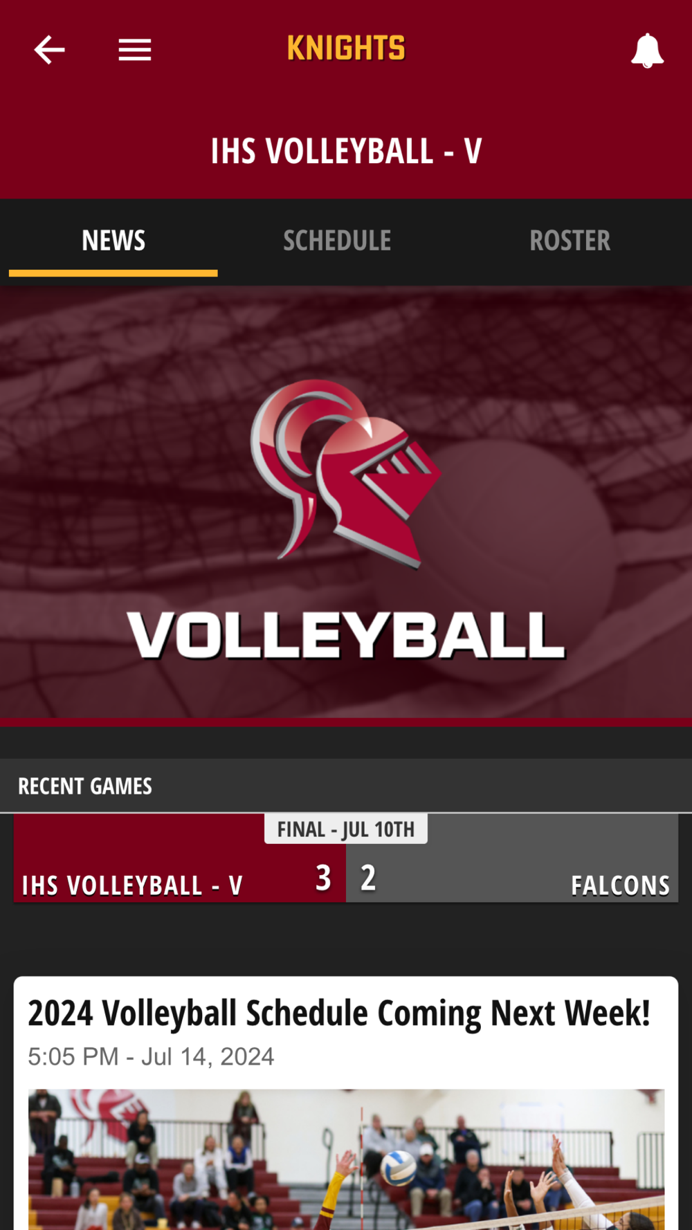 The IHS Knights app is provided and operated by Irondale High School and features scores, schedules, news updates, and rosters for all participating Knights teams and organizations.