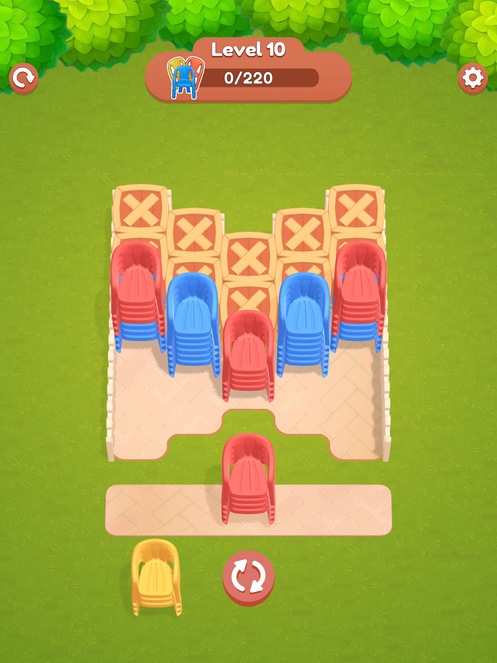 Welcome to Chair Sort, where stacking chairs is a blast! Drop and arrange chair stacks to complete your level goals. Sort them out and watch as your chair puzzle comes to life. It’s a quirky, entertaining twist on puzzles that will keep you hooked!