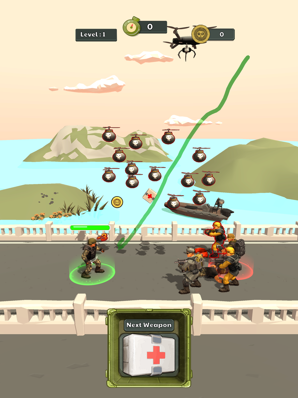 Bullet Draw tests your strategy and precision! In this turn-based war game, draw lines to make drone-delivered weapons fall to your allies. Take turns shooting with enemies and defeat them all to advance to the next level.