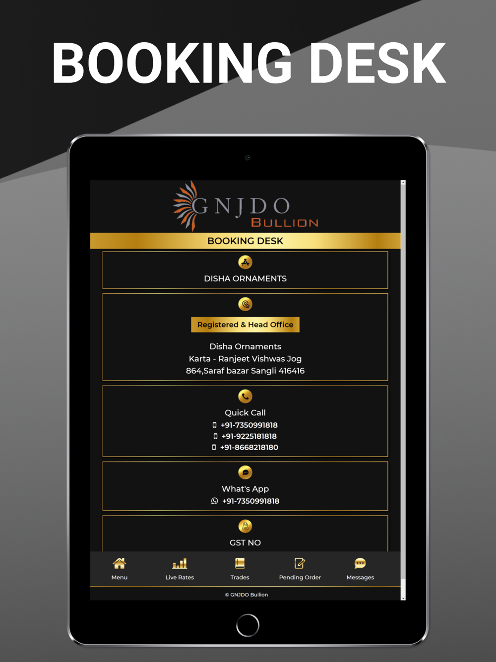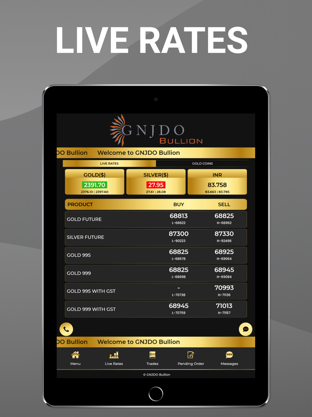 - The app is designed for existing customers of GNJDO Bullion.