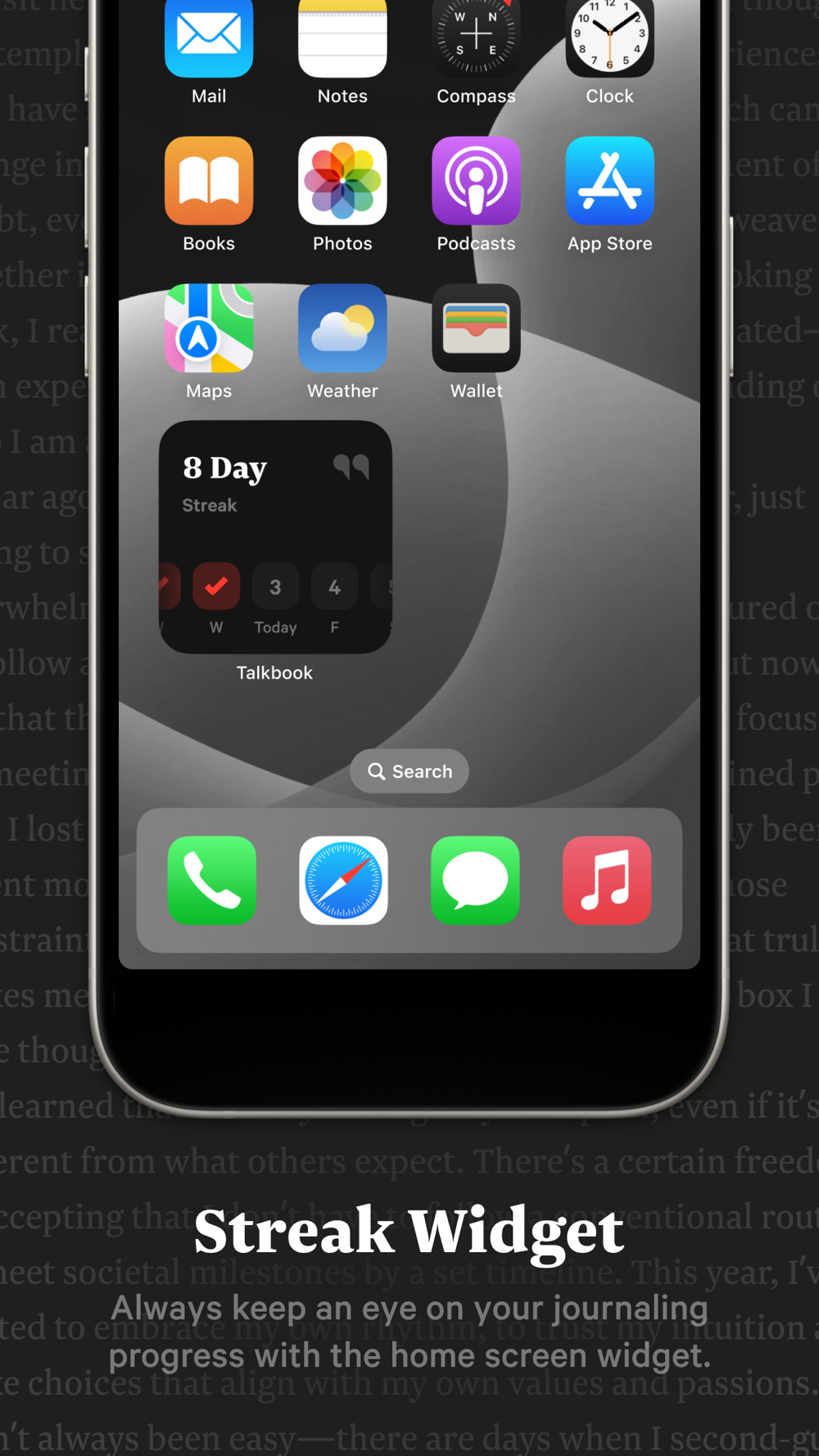 Journaling has never been easier. Open the camera, start talking, and let your thoughts flow. Talkbook records and transcribes everything you say so you can focus on expressing what's on your mind — not how to phrase it.
