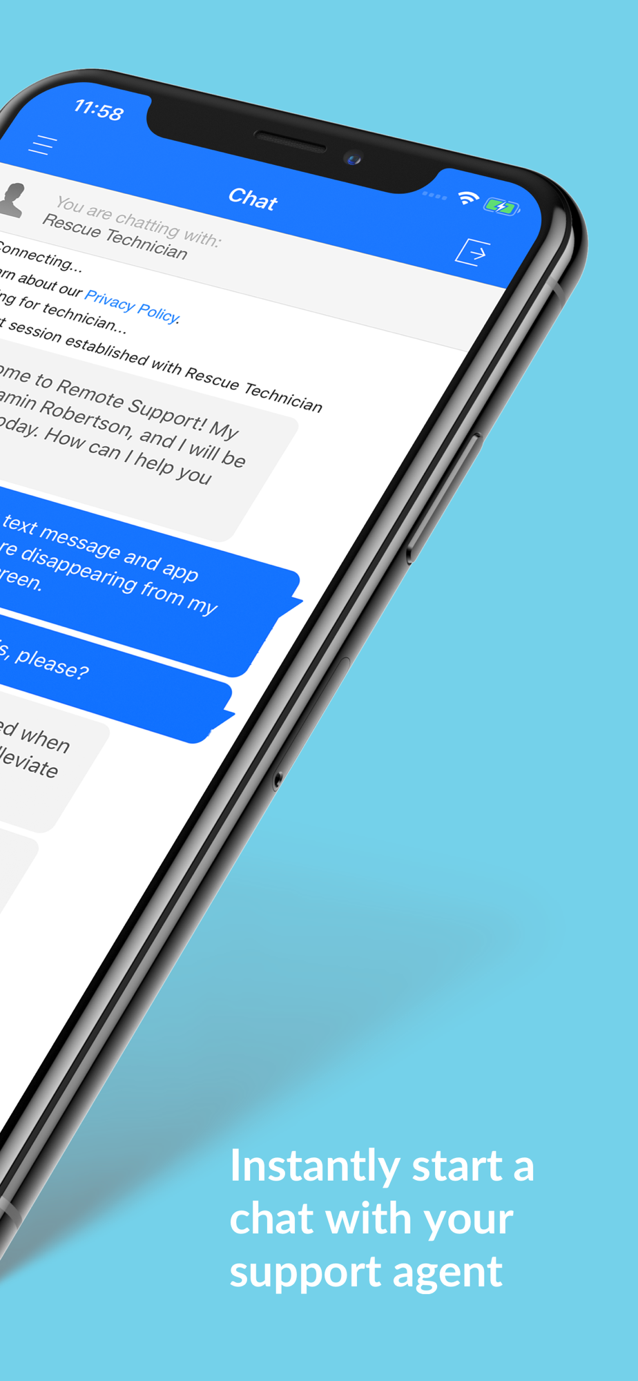The Rescue + Mobile application allows support technicians to troubleshoot a problem you are having on your device. To use this application you must be receiving support from a technician who is using LogMeIn Rescue and will provide you a pin code to start the session.