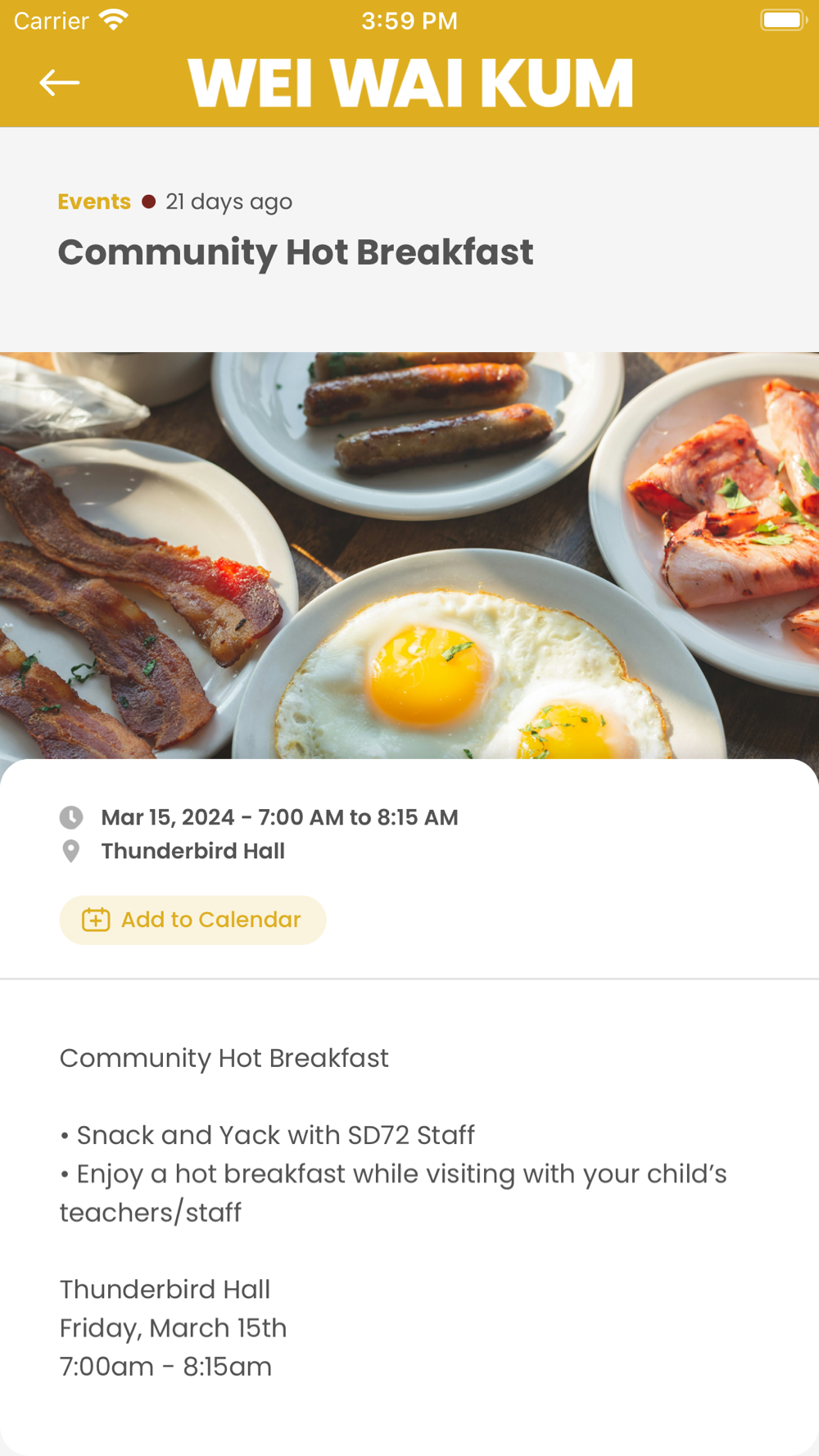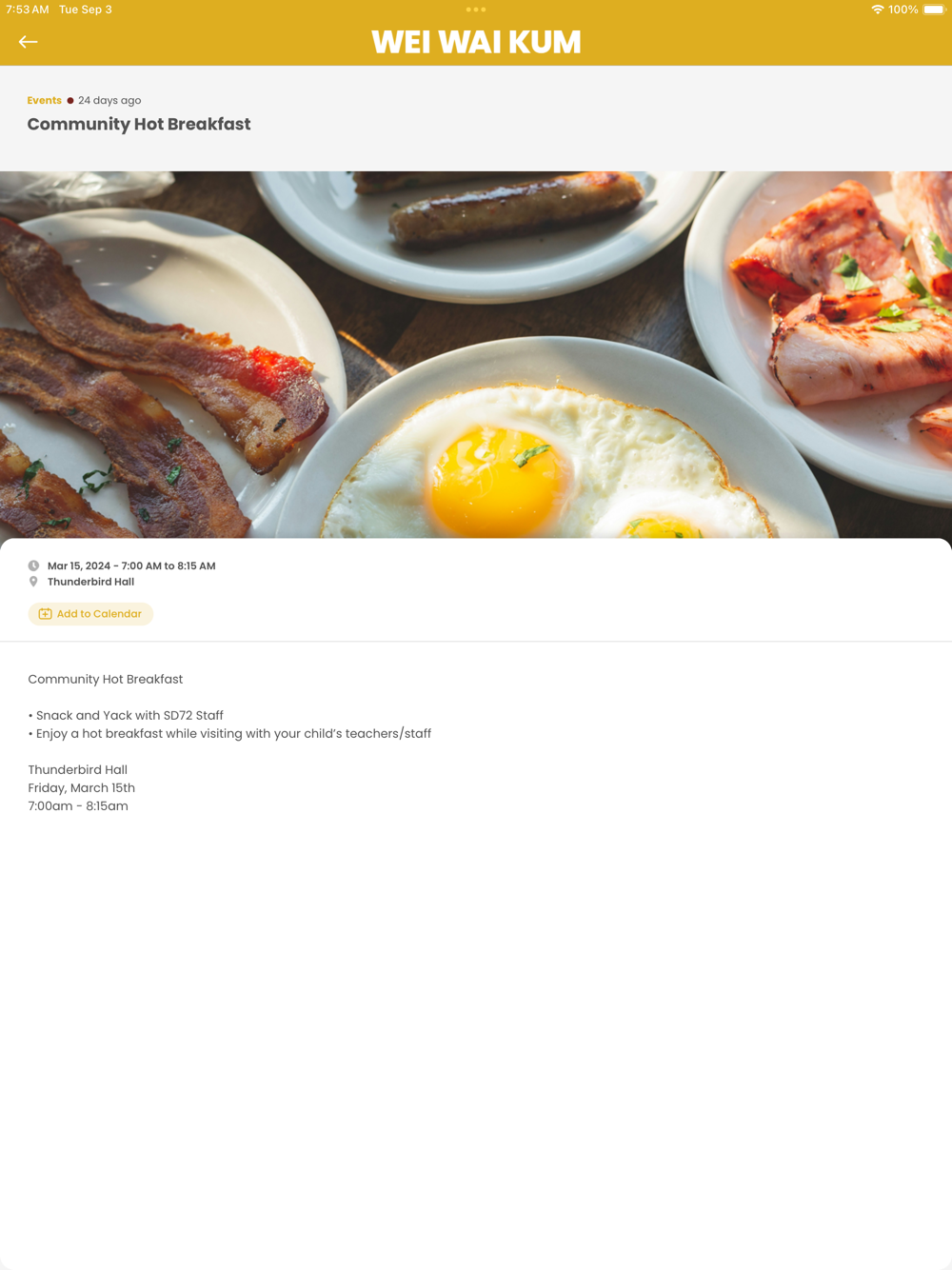 - Add events to their device's calendar with one tap