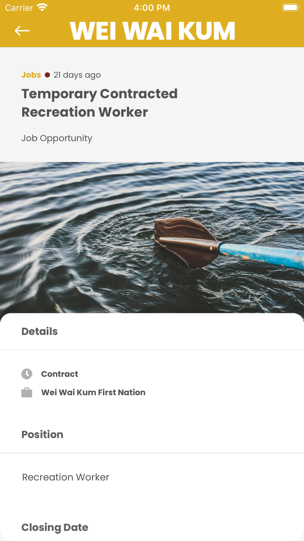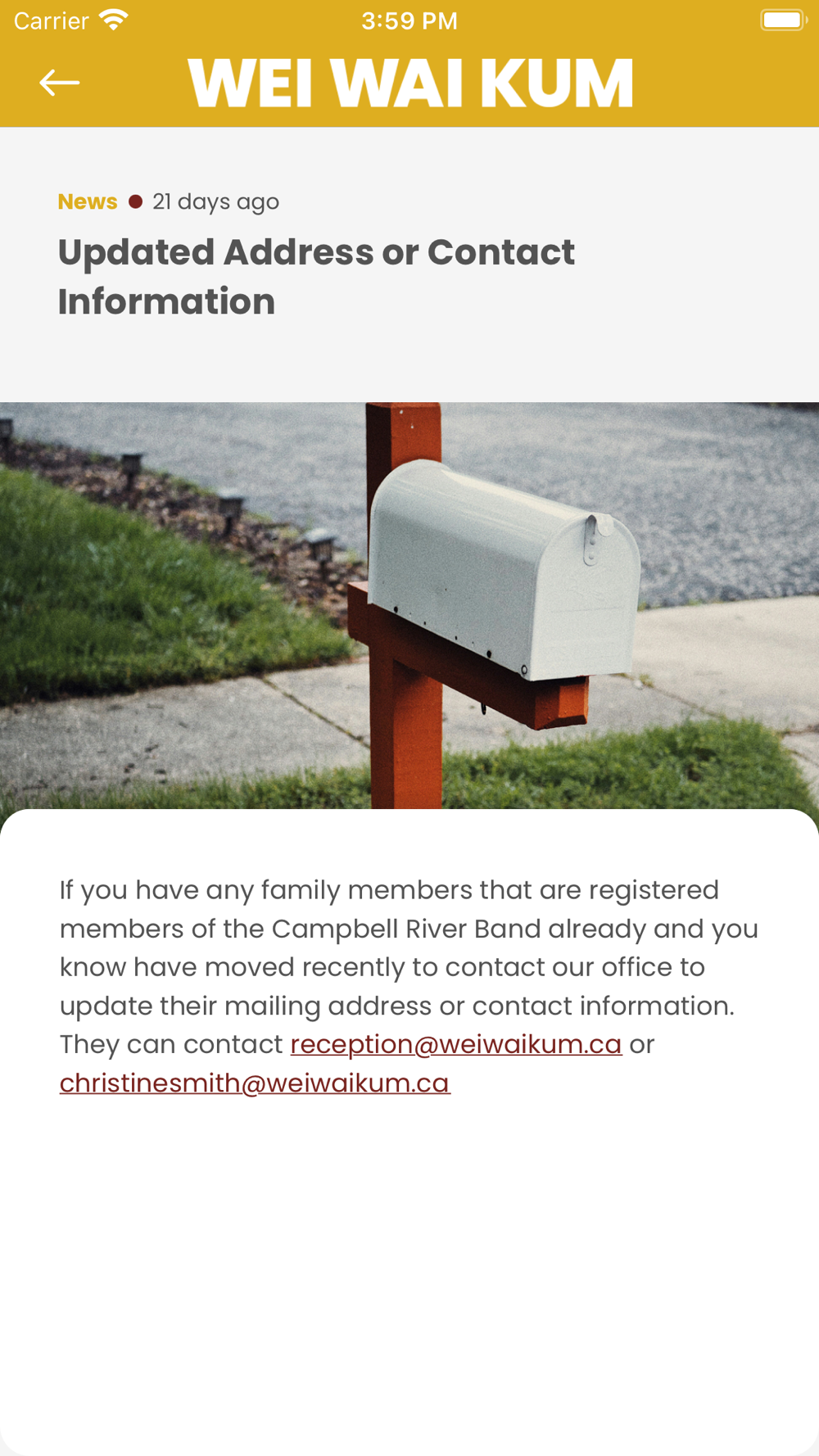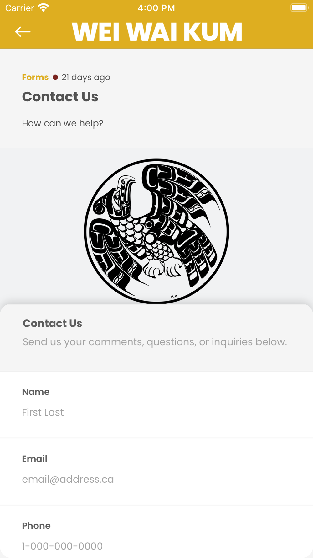 Welcome to the App of the Wei Wai Kum First Nation! We have developed the Wei Wai Kum First Nation app to be a communications platform for our community. Our app helps Wei Wai Kum First Nation staff, community members, band members, and the general public to keep up with what's going on around the Nation.