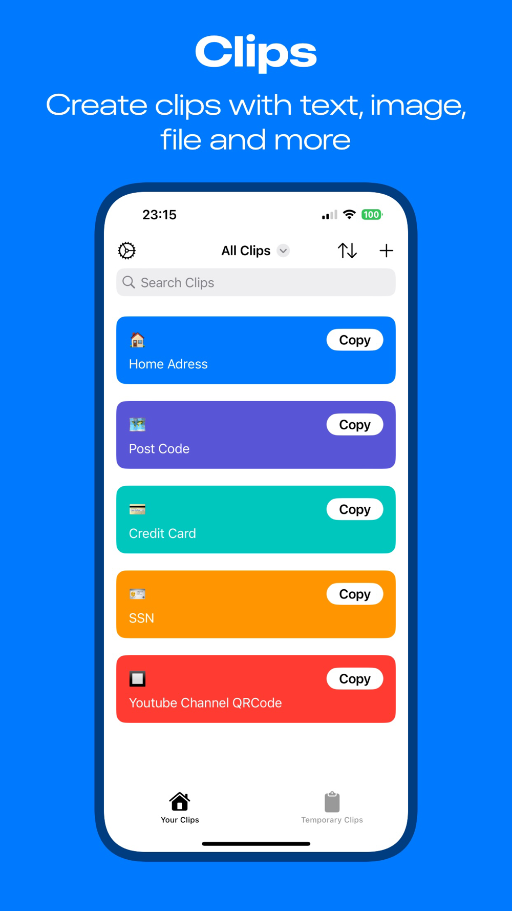 Custom Keyboard: Access and paste your clips quickly with the built-in custom keyboard.