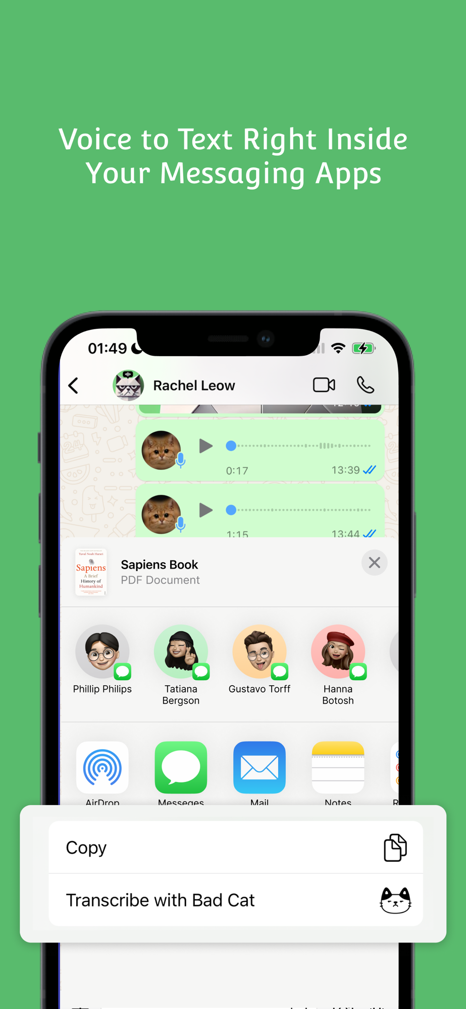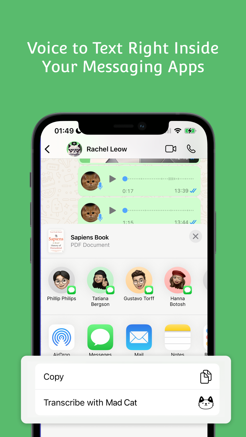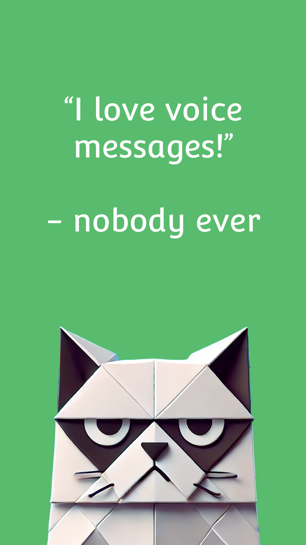 "I'll turn your friends' 5-minute voice essays into 5-second reads, because honestly, who has time for their life story? You're welcome." - Mad Cat