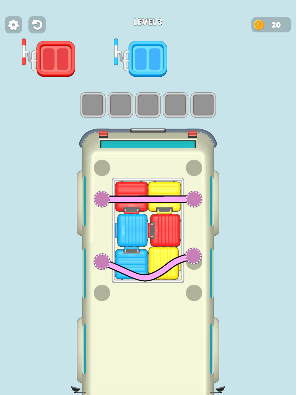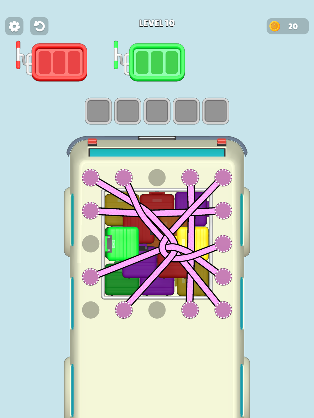 Step into the world of Tangle Trunks, where your organizational skills are put to the test! In this addictive puzzle game, your mission is to untangle and sort colorful trunks packed tightly together. Each level brings a new challenge as you navigate the tangle of ropes and trunks, organizing them by color and packing them just right. With its simple yet captivating gameplay, Tangle Trunks offers hours of fun for puzzle enthusiasts of all ages. Can you master the art of packing and become the ultimate trunk tangle expert? Download now and start untangling!