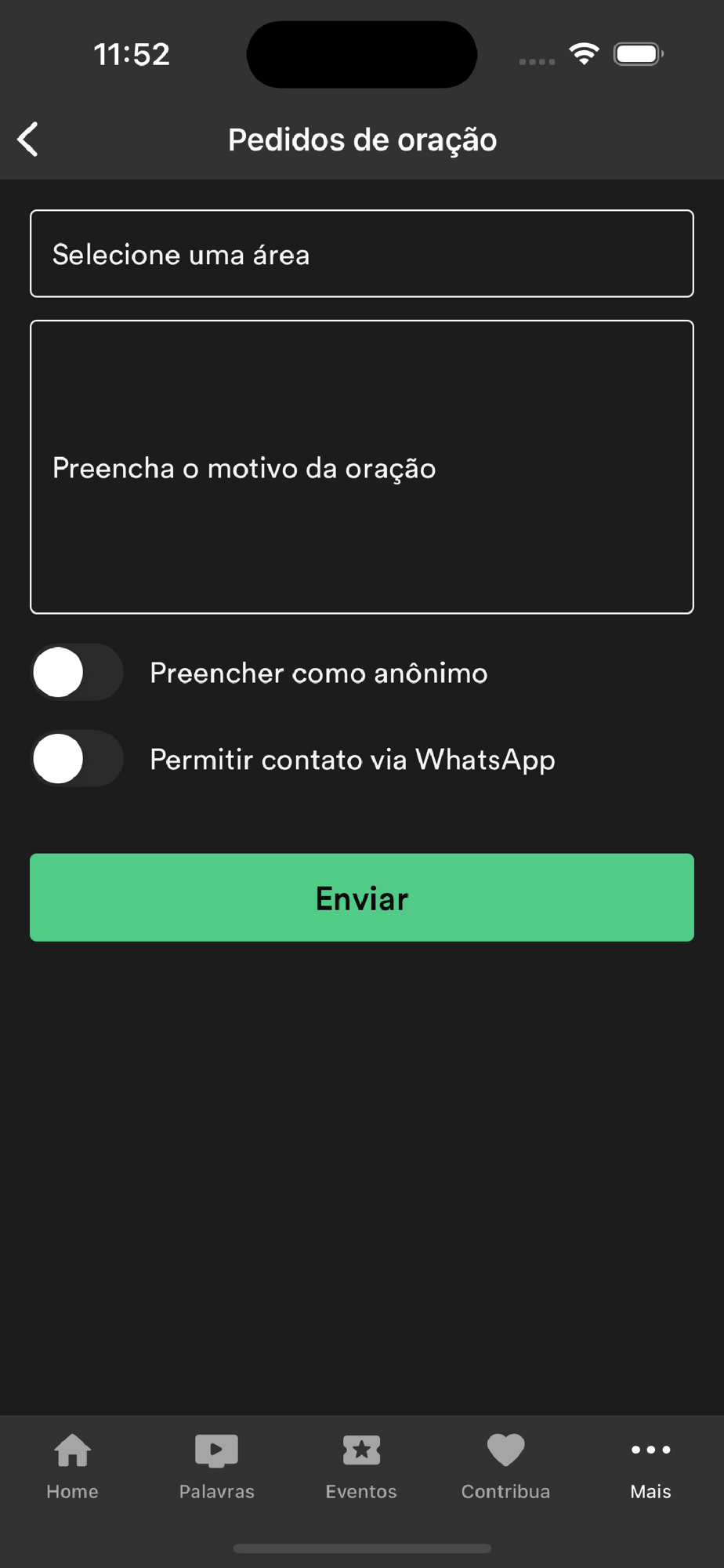 - Faça pedidos de oração através dos intercessores da igreja para você e seus familiares.