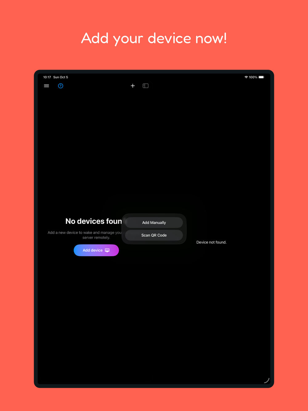 Add PCs, servers, or NAS systems in seconds and wake them remotely using secure Wake-on-LAN technology. Pair instantly by scanning a QR code, customize configurations, and monitor real-time status — all from one elegant dashboard.