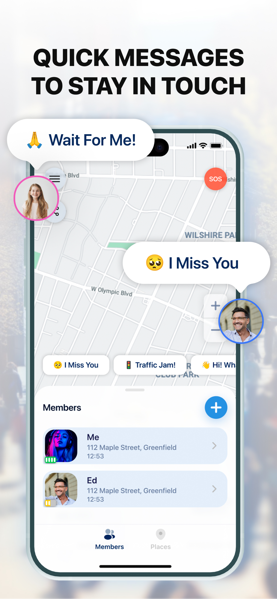 Sharing your location is quick and easy — just tap a button, and the people in your circle can see where you are. And in case of emergency, there's an SOS feature that lets you send an alert with your location, so someone can come help right away.