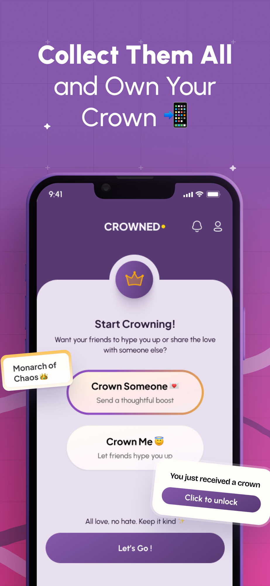 Whether you’re spreading kindness, humor, or appreciation, Crown makes positivity contagious. Be part of the movement, build your chain, and see how far your crown travels!