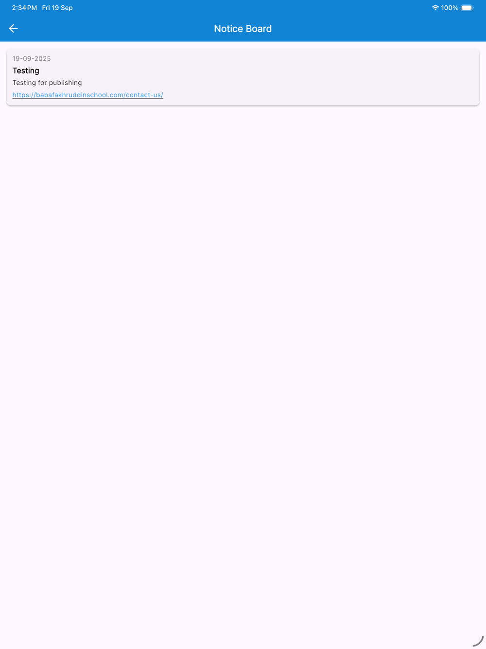 BABA FAKHRUDDIN SCHOOL allows students and parents to log in and manage student-related activities such as , notice boards , studymaterial etc.