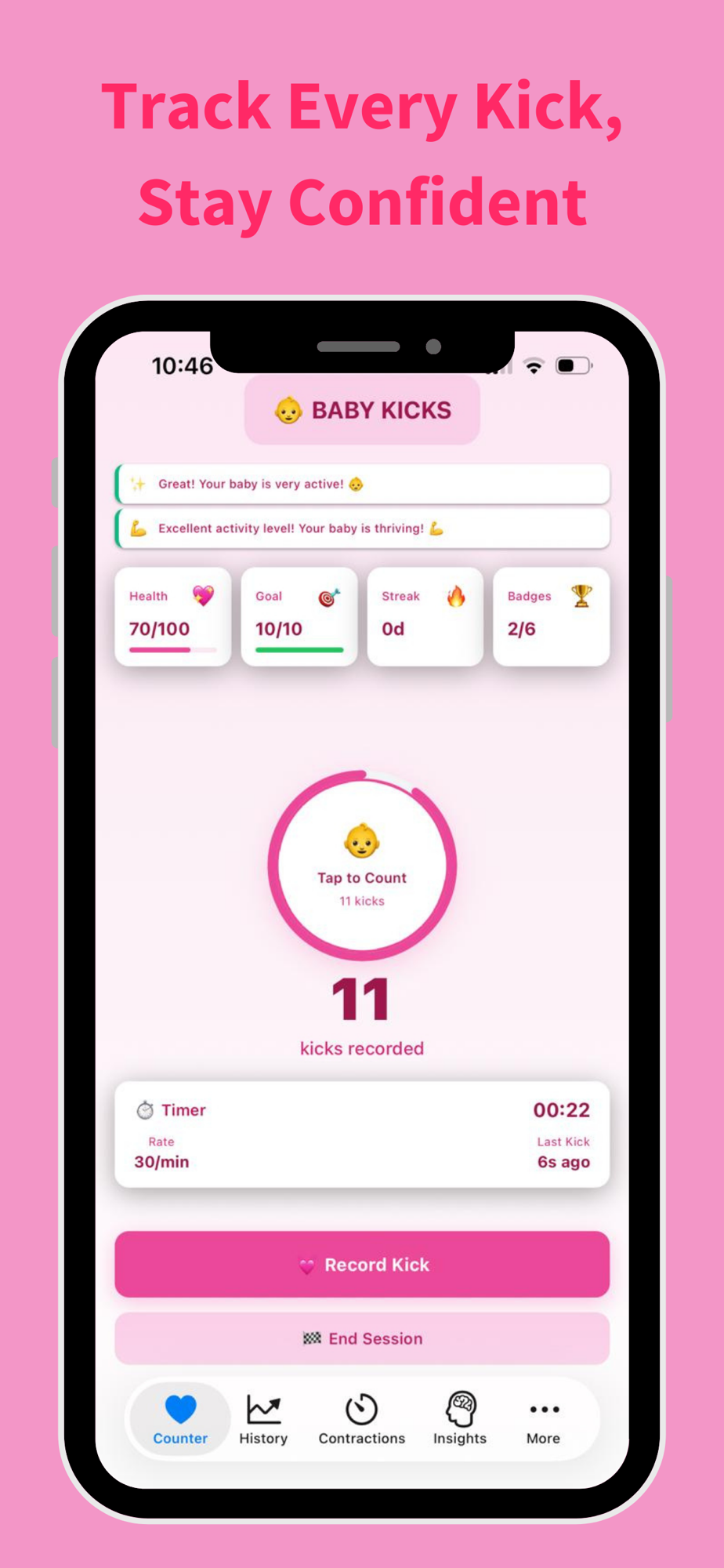 With Baby Kick Counter: Tracker Log and Contraction Timer App, you can: