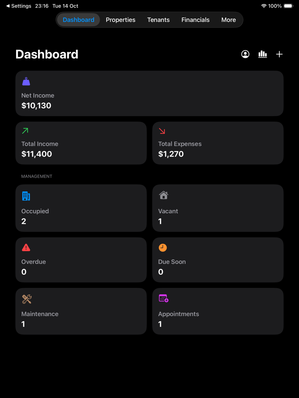 Comprehensive Dashboard: Get an at-a-glance overview of your properties, including occupancy, income, expenses, and maintenance requests.