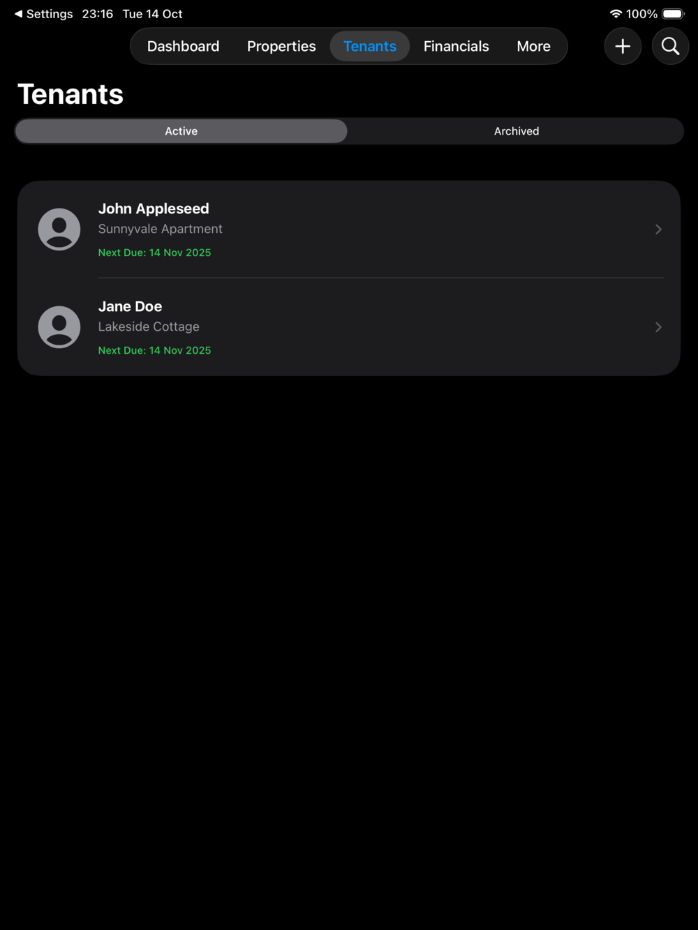 Tenant Management: Keep track of tenant information, lease agreements, and payment history. Send reminders and log payments with just a few taps.