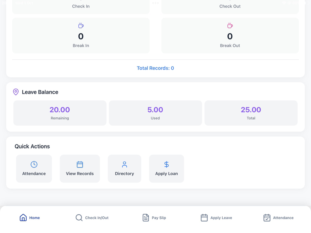 Attendance Tracking: Mark attendance, view time logs, and monitor work hours with ease.