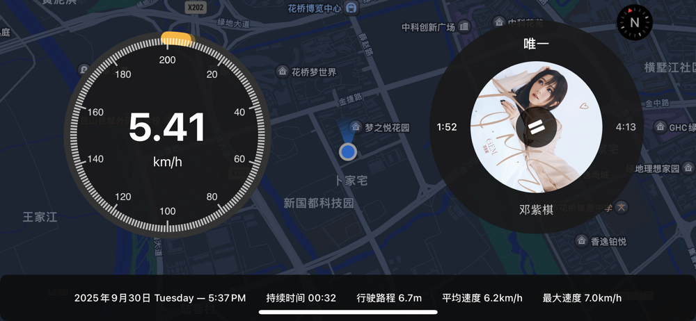 GPS测速:实时显示当前速度、平均速度、最高速度与行驶距离,表盘清晰易读。