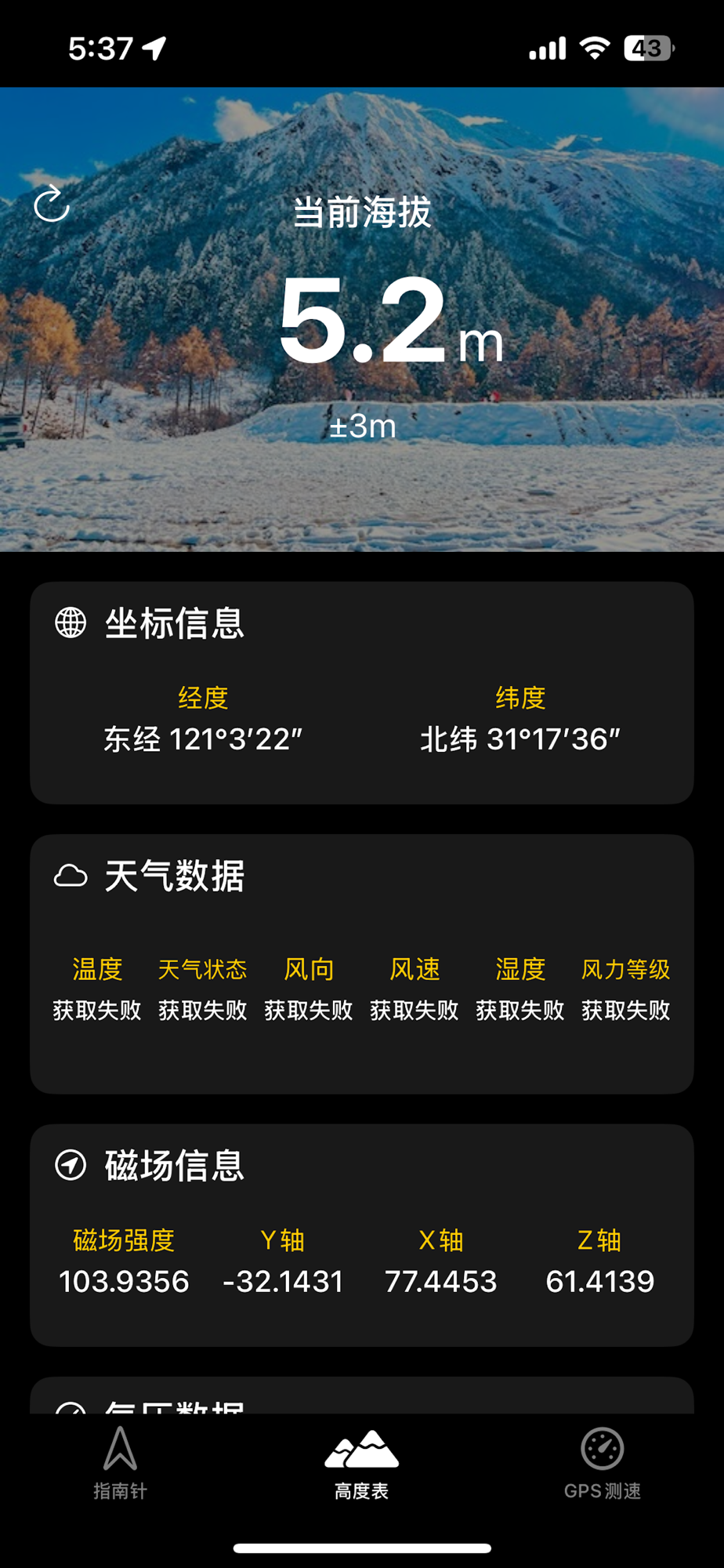 海拔高度:基于系统定位与气压数据,提供实时海拔与大气压信息。