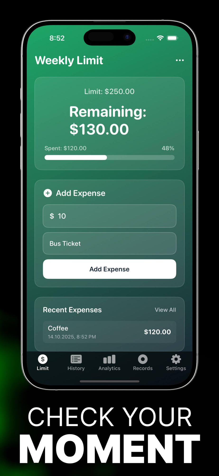 Take control of your spending with a clear, structured approach that helps you stay aware of every dollar. This app allows you to track your daily expenses, set weekly limits, and instantly see how your habits shape your financial balance. Every action is simple — add a purchase, view your remaining budget, and analyze your weekly performance in clean, intuitive charts.