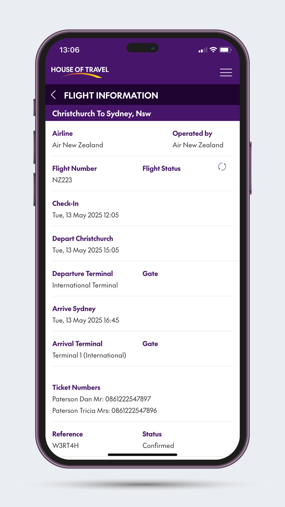 Simply create a login and your House of Travel booking itinerary will appear in the app!