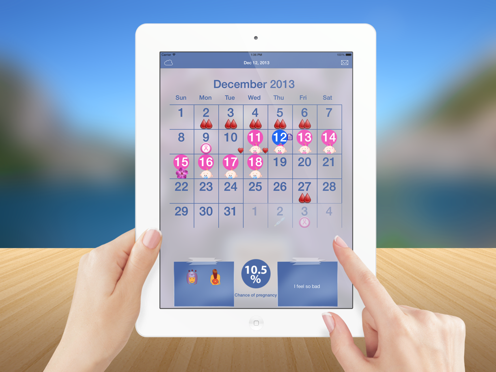 Once your partner installs iGyno on her device and authorizes your access you’ll be immediately connected to iGyno and you will be able to share with her the same events and moods.