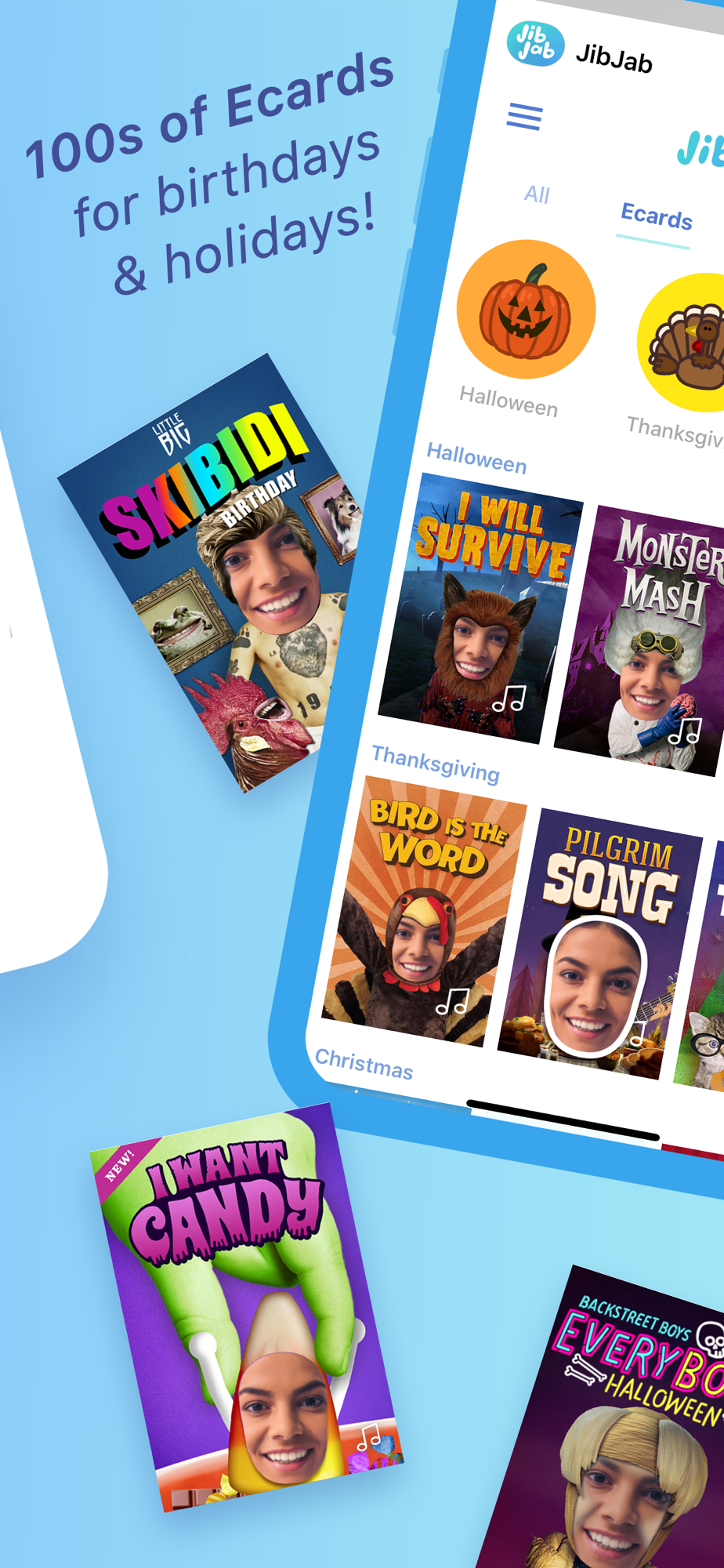 Enjoy unlimited premium Ecards and music videos with a JibJab membership. Enjoy and share 1,500+ exclusive Ecards, GIFs and videos via our app and website.