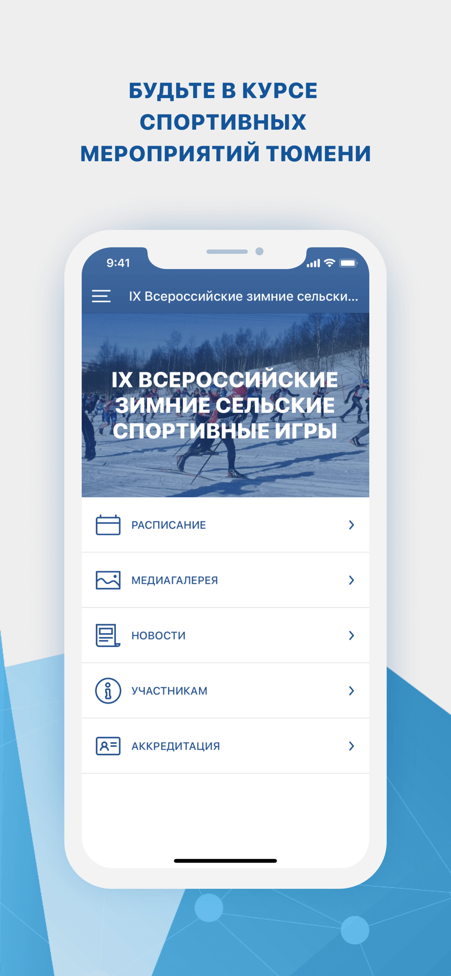 - Мероприятия, их расписание, онлайн-трансляции, результаты с возможностью комментирования;
