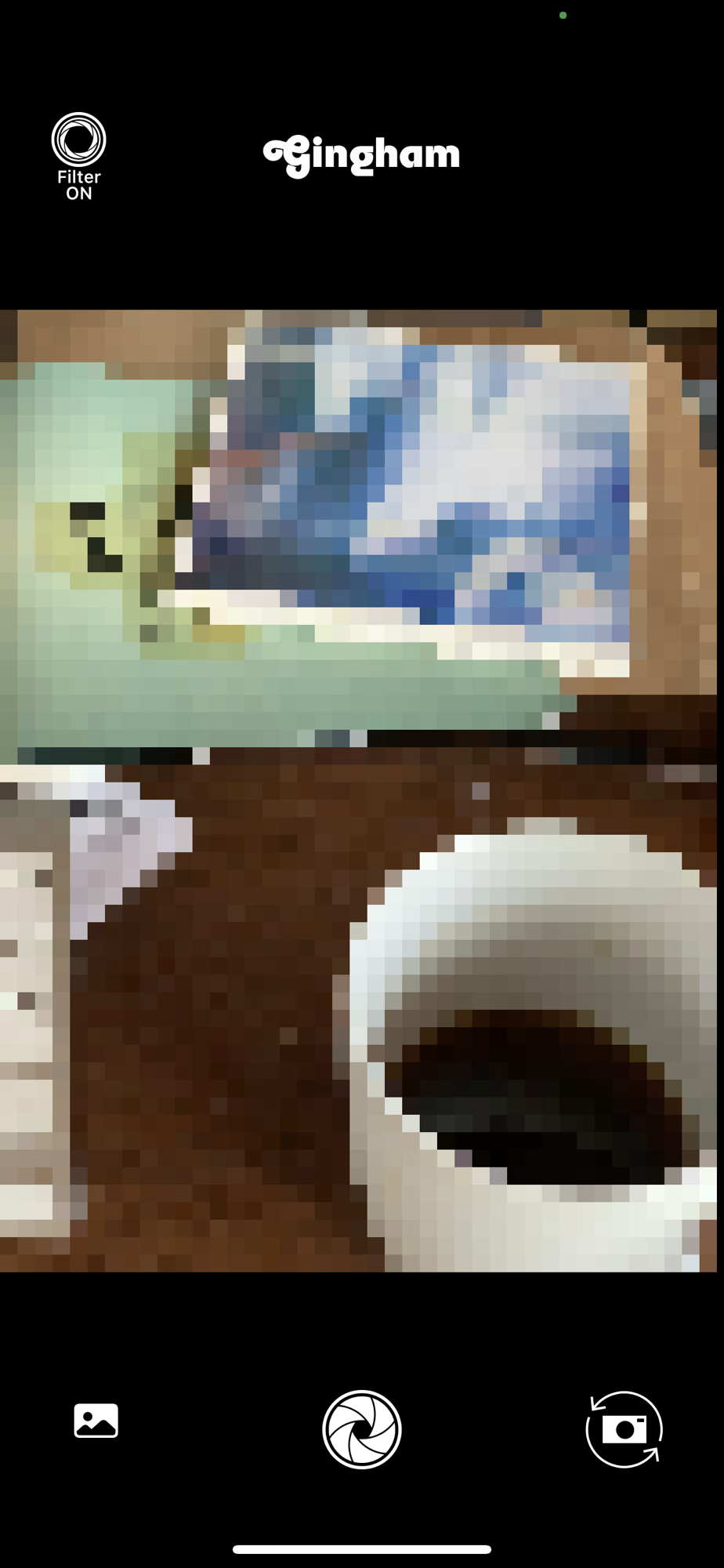 Gingham lets you take a picture with the Camera, and gives you a highly-pixellated version of it in return.